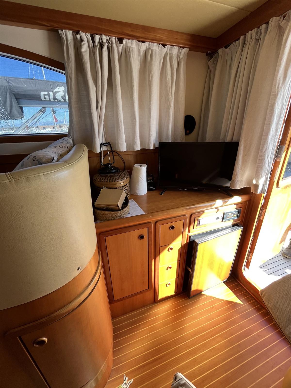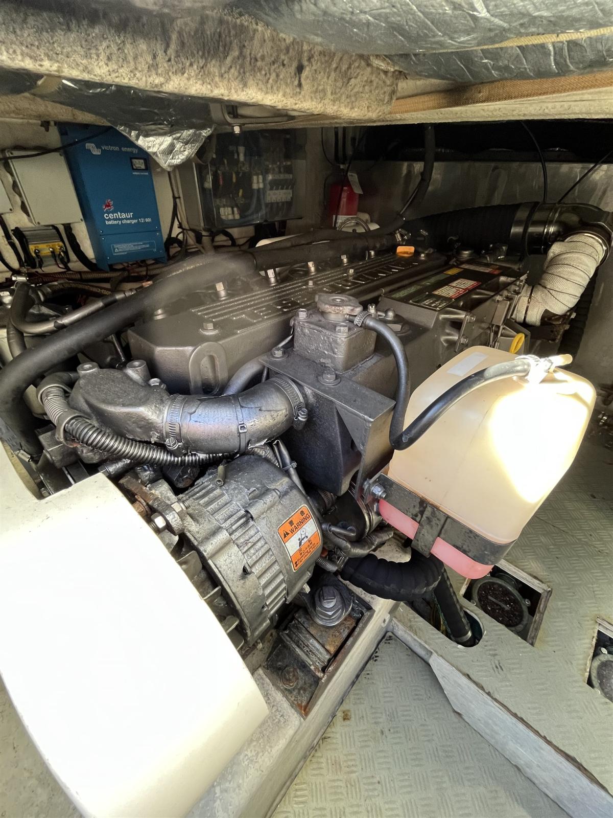 2025 : étanchéité des essieux hydrauliques, bagues, équilibrage de l’hélice, fermeture totale des filets d’ombrage, plafonds du carré, insonorisation du compartiment moteur, rehausseur et résine de l’échappement, regommage du teck, peinture de l’armoire du cockpit et de la table anti-mouches et de toutes les pièces extérieures en bois.