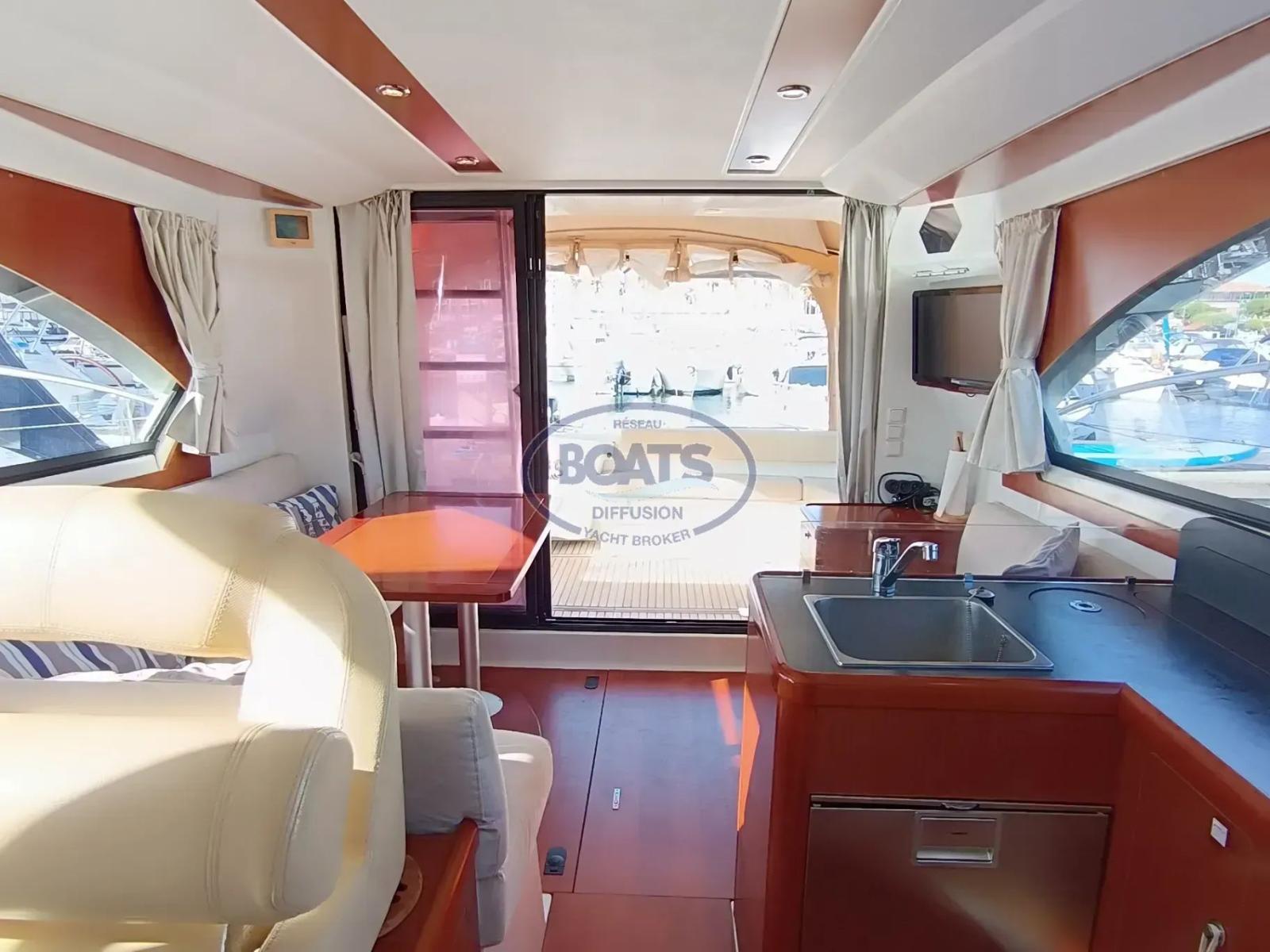 Idéal pour des week-ends prolongés ou des croisières familiales, il est très confortable : Flybridge complet avec bain de soleil et deuxième poste de pilotage. Maintenance récente et régulière (échangeurs/coudes 2024) pour une tranquillité d'esprit immédiate.