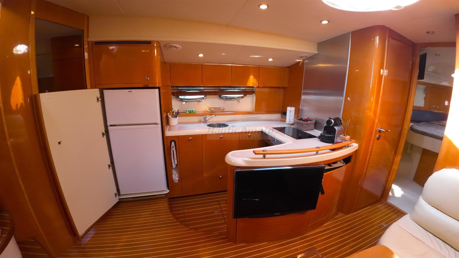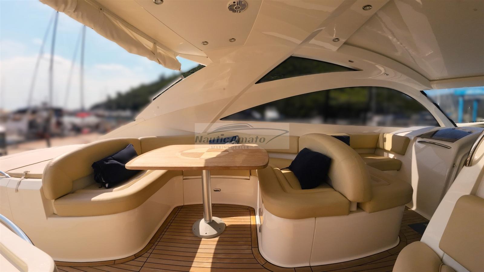 Alarme moteur, Alarme de pompe de cale, Alternateur, Eau sous pression, Douche de cockpit, Flaps hydrauliques, Garage à annexe, Indicateurs de flaps, Lavabo dans le cockpit, Éclairage de courtoisie, Défenses, Passerelle, Pompe de cale automatique, Pompe de cale manuelle, Pont en teck, Cockpit en teck, Prise de quai, Onduleur, Rollbar, Guindeau électrique, Echelle de bain, table de cockpit, Table pliante de salon, Corne, Winch électrique arrière.