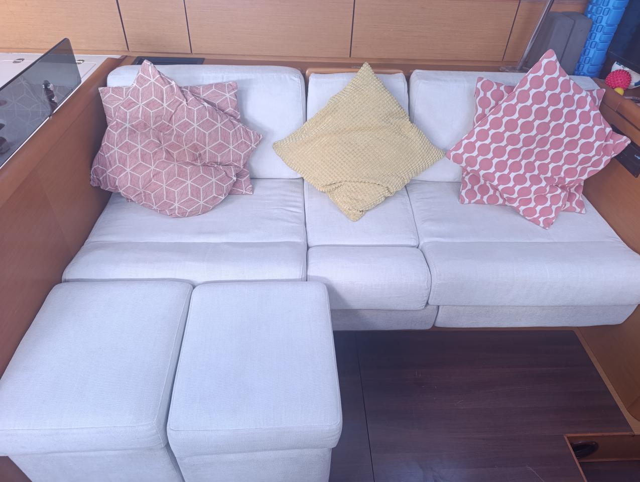 Canapé sofa et coin télévision sur bâbord