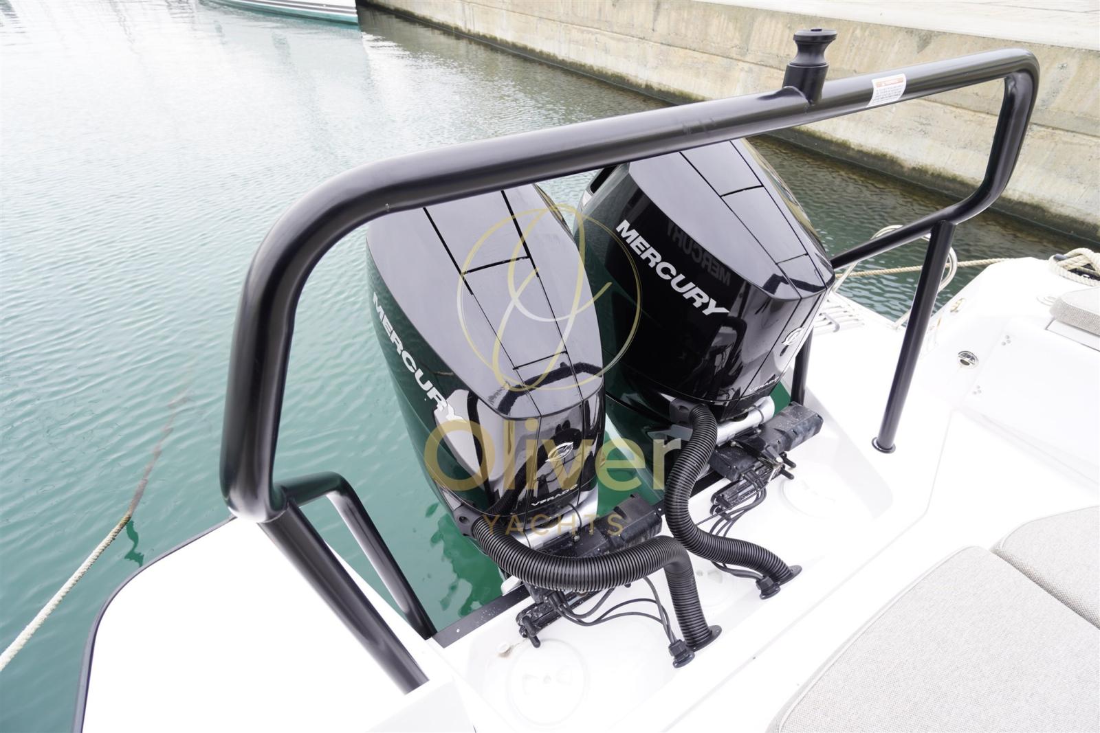 Propulsé par deux Mercury Verado 350 CV, le bateau est réactif, brillant et structuré pour assurer une consommation de carburant gérable à vitesse de croisière, tout en conservant une courbe de performance supérieure. L’ensemble Brabus Line l’amène à un autre niveau : des matériaux haut de gamme, des détails bien pensés et une esthétique distinctive qui font de ce modèle l’un des plus recherchés de sa catégorie.