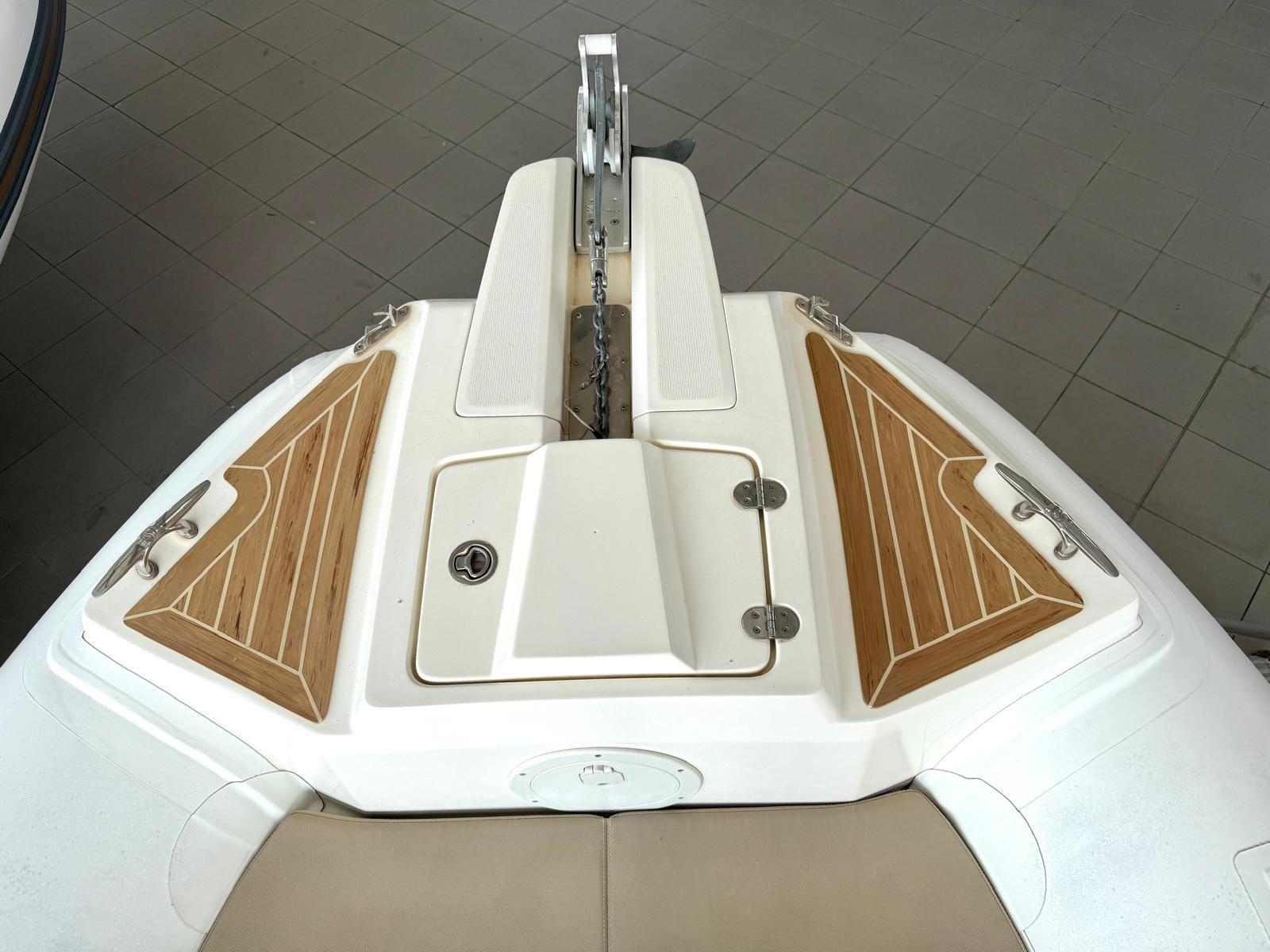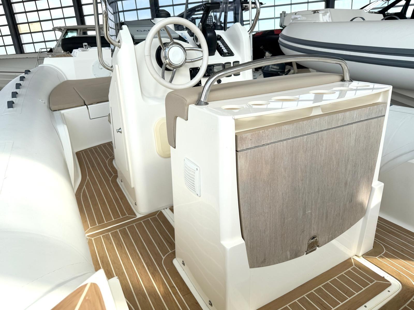Version luxe, cockpit en teck, rollbar polyester, extension plateformes arrières, GPS/Sondeur GARMIN, VHF, projecteur de pont ...