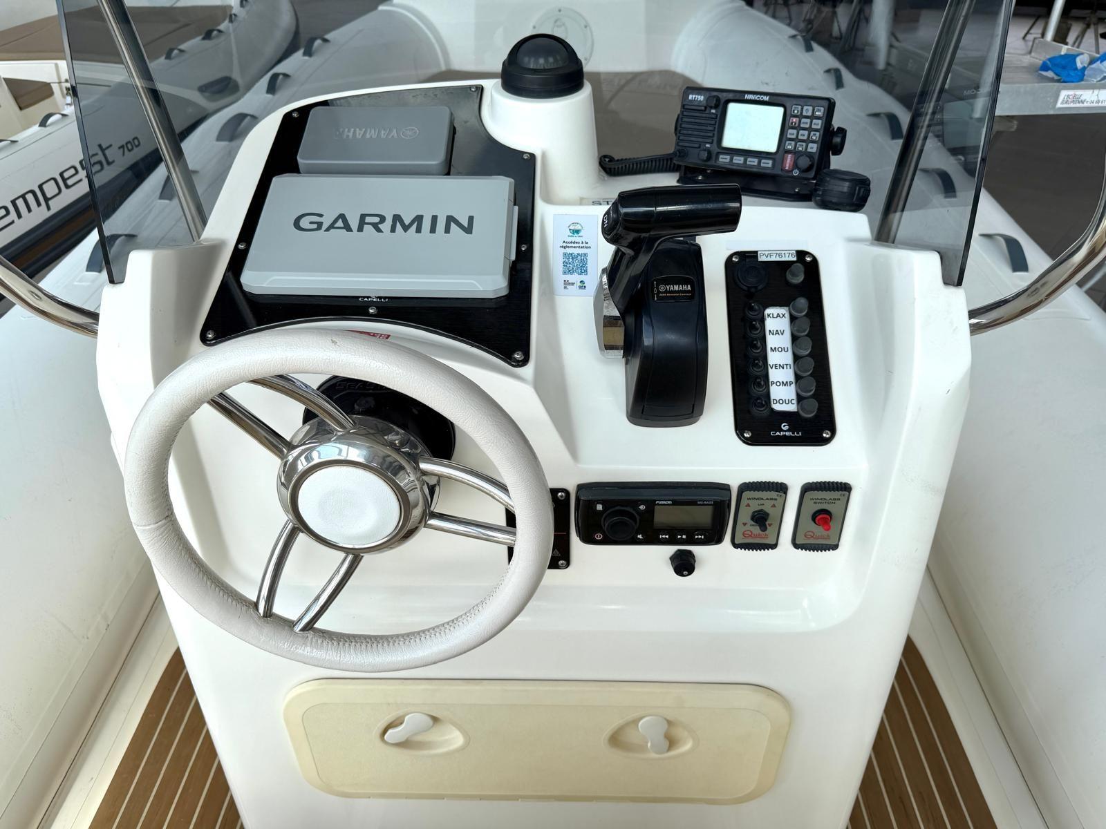 Le Capelli Tempest 700 est un semi-rigide élégant et polyvalent, idéal pour les sorties en mer en famille ou entre amis. Réputé pour sa carène performante et sa excellente stabilité, il offre un excellent passage en mer, un grand confort à bord et de beaux espaces de détente. Son large bain de soleil avant, ses nombreux rangements et sa motorisation puissante en font un modèle recherché aussi bien pour la balade que pour les sports nautiques.