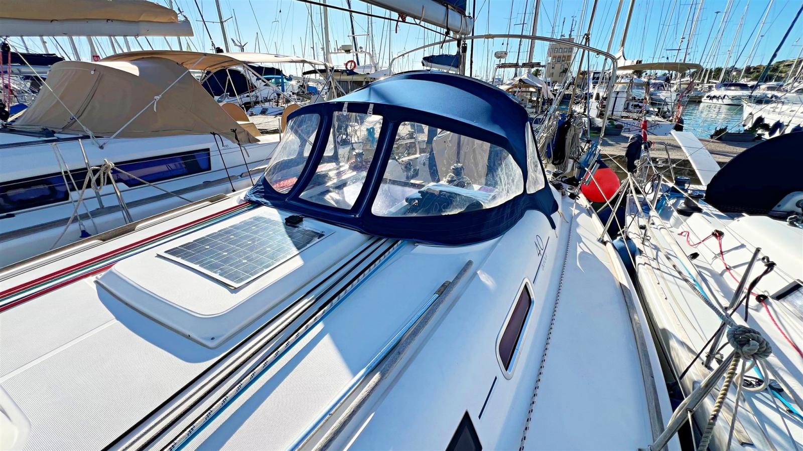 Ancre (Delta 25kg), Eau sous pression, Radeau de sauvetage (Arimar 8 pax), 4 Batteries, Chargeur de batterie (CRISTEC), Douche de cockpit, Hélice de rechange (2 fixed blades), Éolienne (AIR-X Marine), Bossoir pour HB, 5 Panneau solaire, Passerelle, Pompe de cale manuelle, Cockpit en teck, Prise de quai, Connexion eau sous pression à quai, Guindeau électrique (QUICK 1000 W), Gréement monotoron (2005), Echelle de bain, Système de filtration des eaux usées, Chaise support HB, table de cockpit, Annexe (Arimar 2023+Mercury 2,5cv), 4 Winch (Harken).