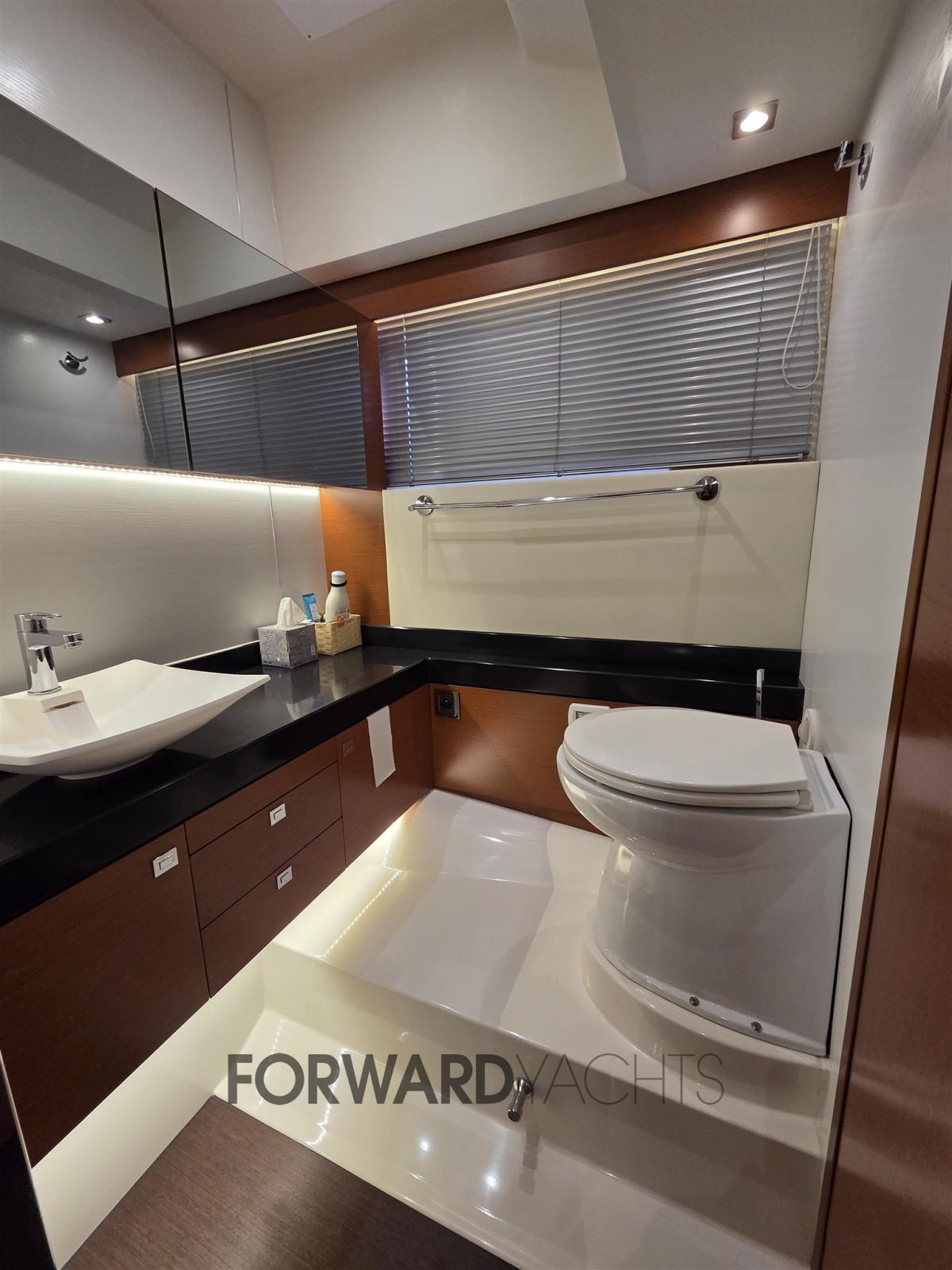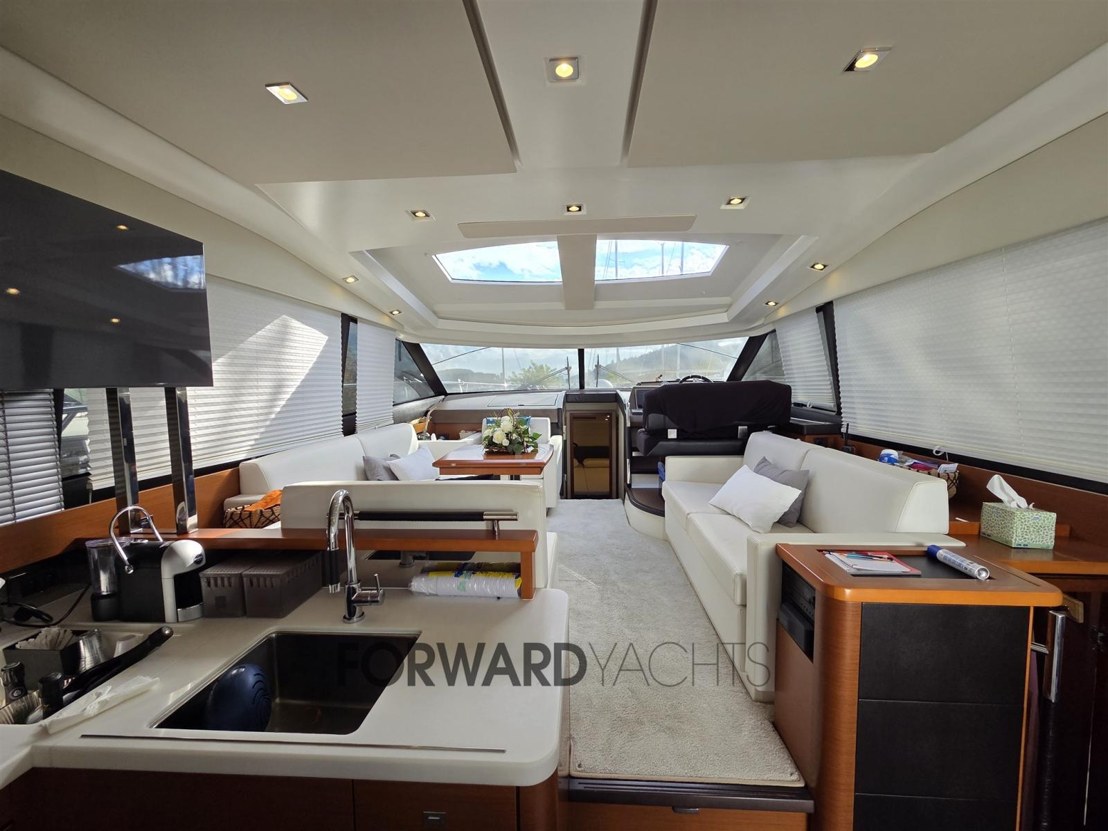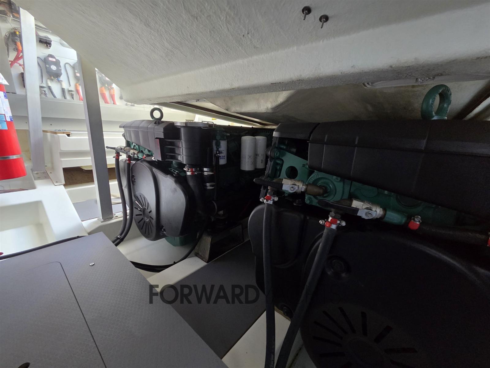 Propulsé par deux moteurs Volvo IPS 600 de 435 ch chacun, il offre une tenue de route fluide au joystick et une excellente efficacité de croisière.