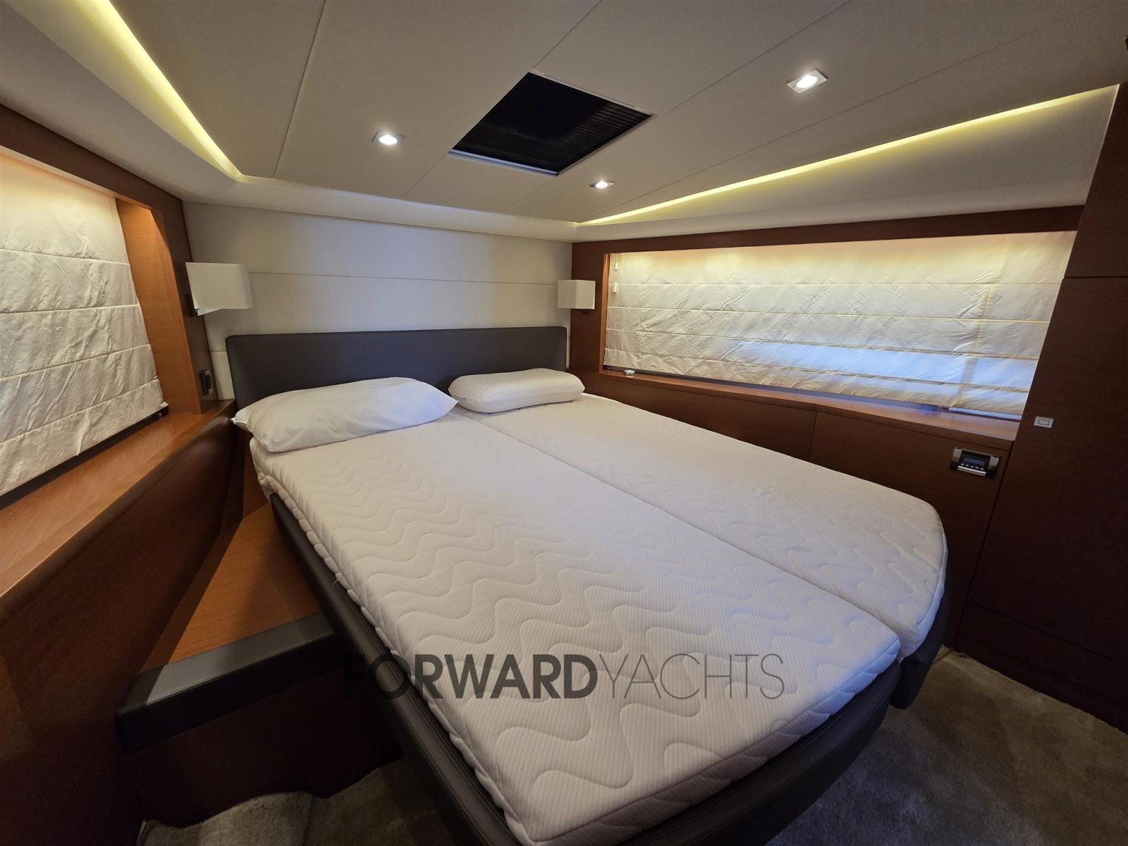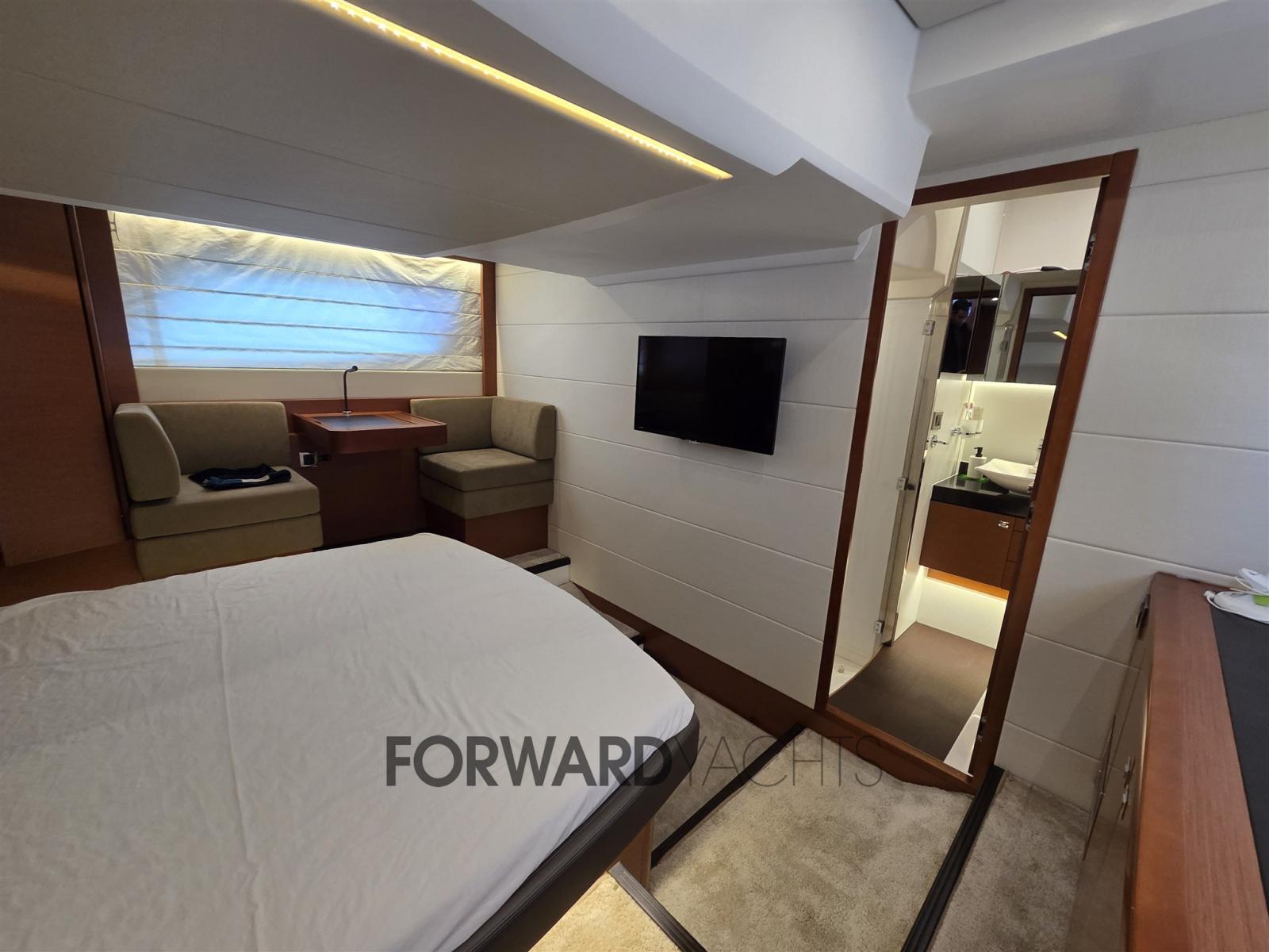 La cabine du propriétaire située au centre du navire dispose d’un accès personnel depuis le salon.