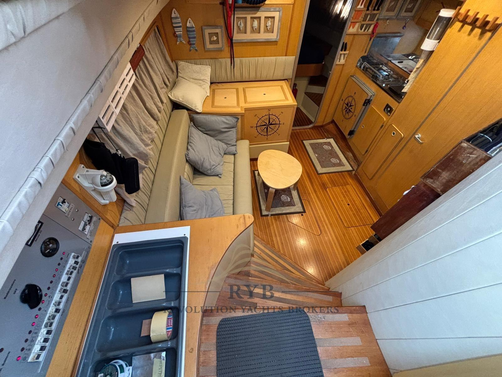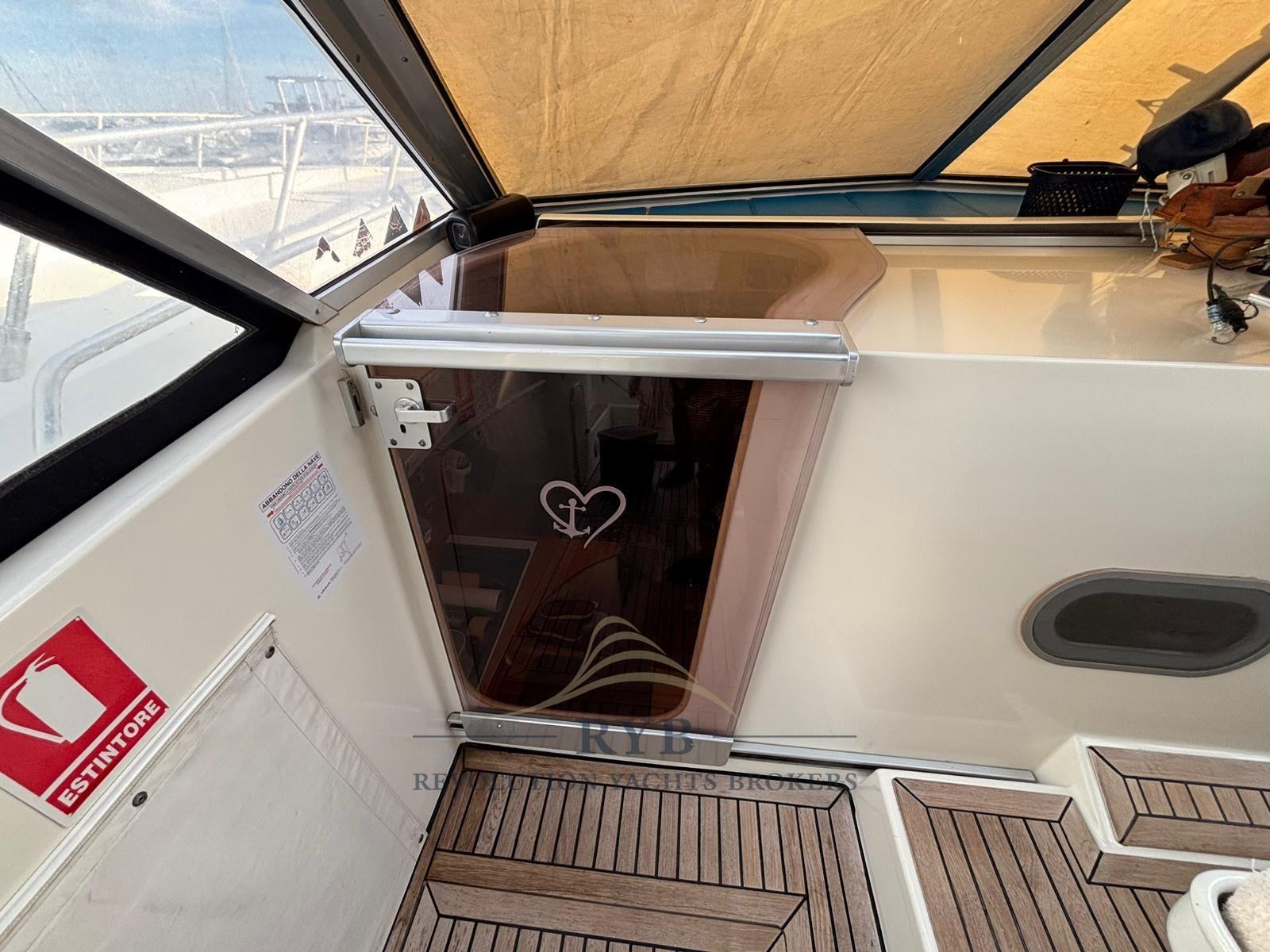 Batteries (2023), Éclairage de courtoisie (LED INTERNE), Passerelle, Plateforme arrière, Cockpit en teck, Prise de quai, Rollbar, Guindeau électrique, Echelle de bain.