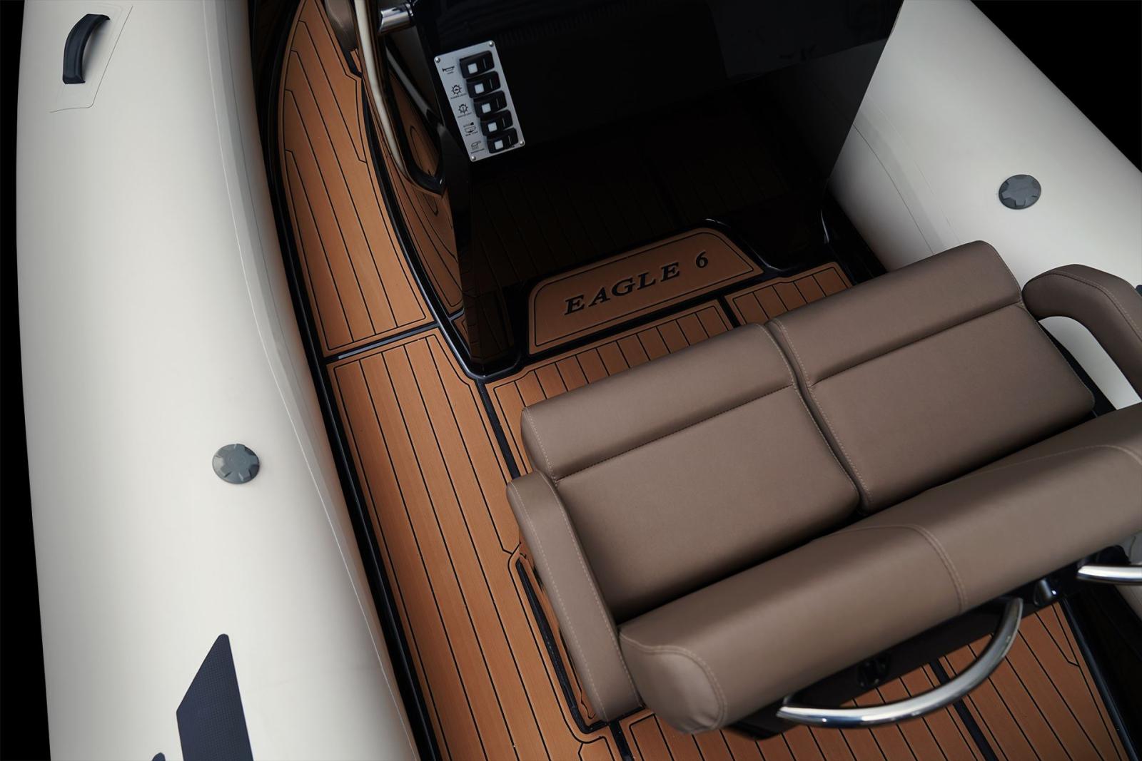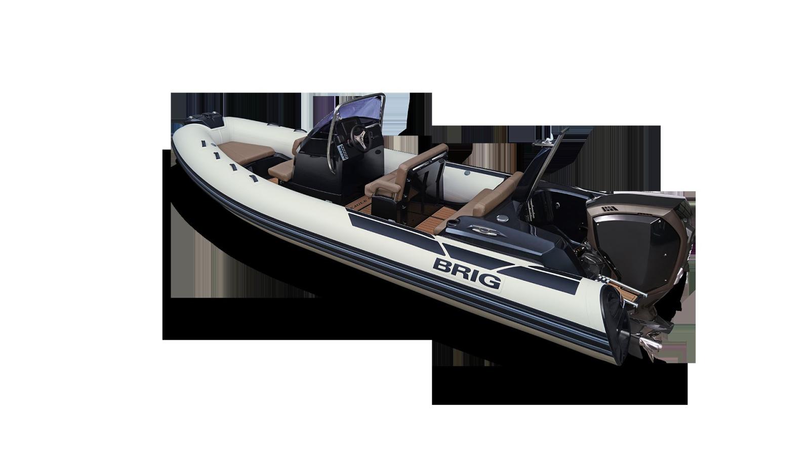 Le Brig Eagle 6 est un semi-rigide haut de gamme conçu pour offrir confort, stabilité et style dans un format compact. Avec ses 6 mètres de longueur, sa sellerie premium, son grand bain de soleil, et sa console centrale ergonomique, il allie sportivité et élégance.