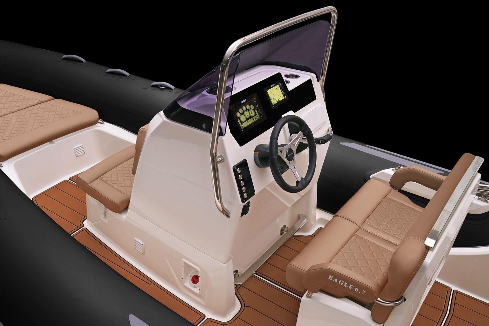 Le Brig Eagle 6 est un semi-rigide haut de gamme conçu pour offrir confort, stabilité et style dans un format compact. Avec ses 6 mètres de longueur, sa sellerie premium, son grand bain de soleil, et sa console centrale ergonomique, il allie sportivité et élégance.