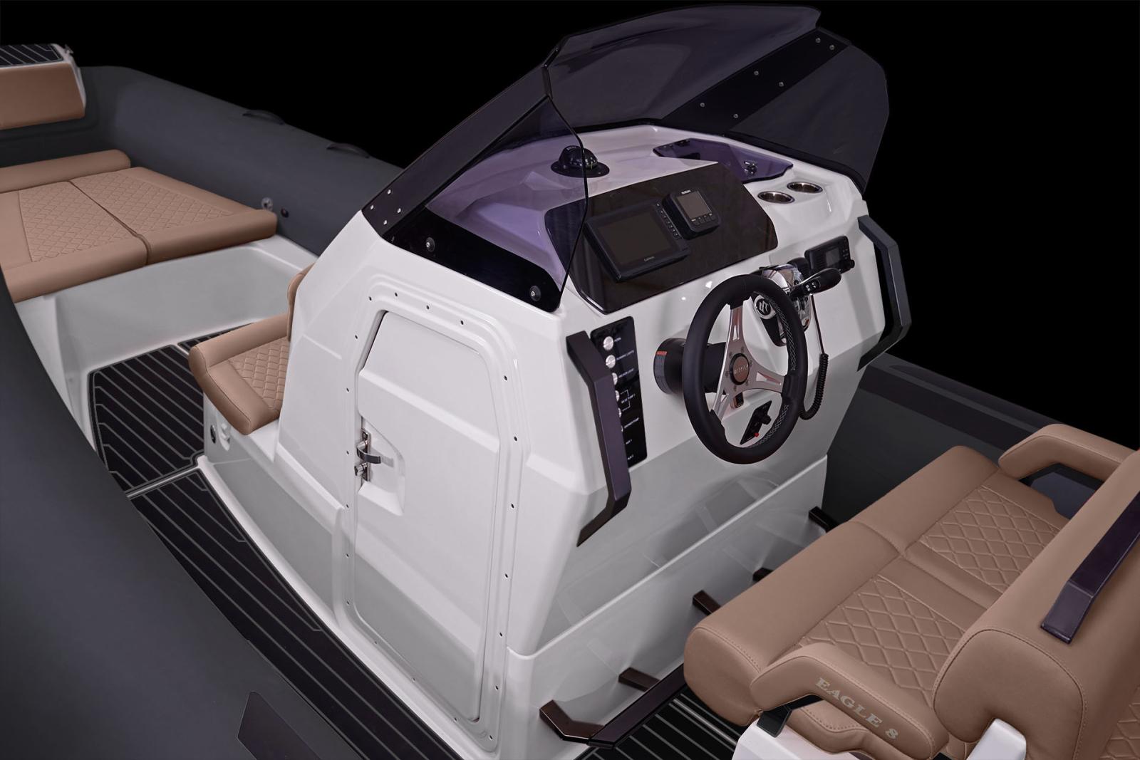 Découvrez le Brig Eagle 8, semi-rigide premium alliant design moderne, puissance et finition irréprochable. Avec ses 8 mètres de longueur, son grand bain de soleil, sa console centrale ergonomique et sa navigation stable, il offre des sorties en mer tout en confort et sécurité.