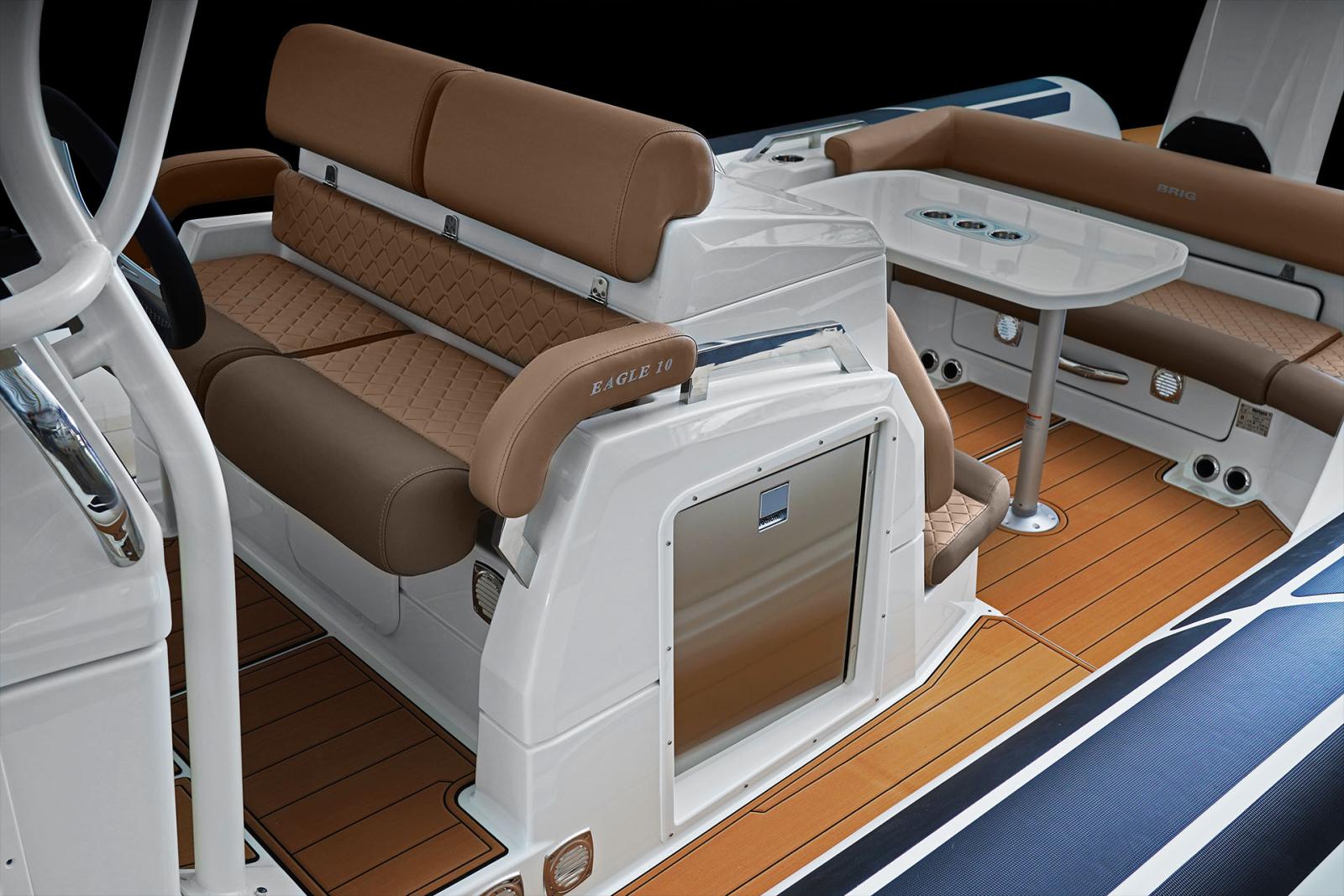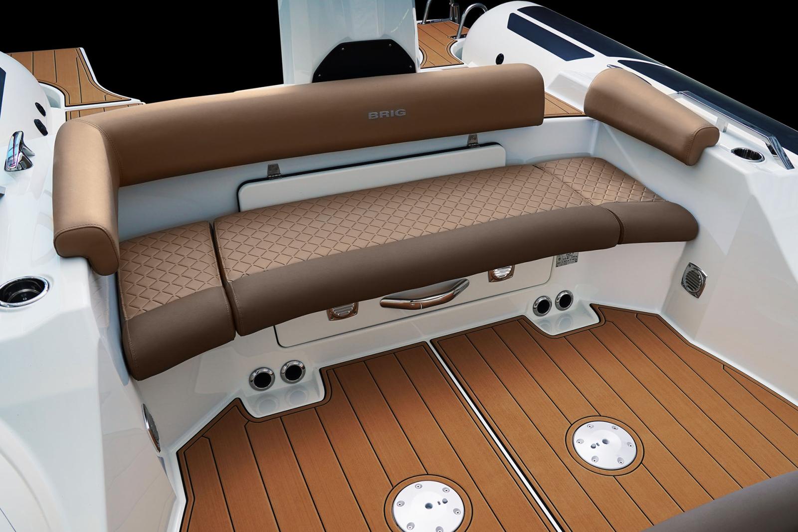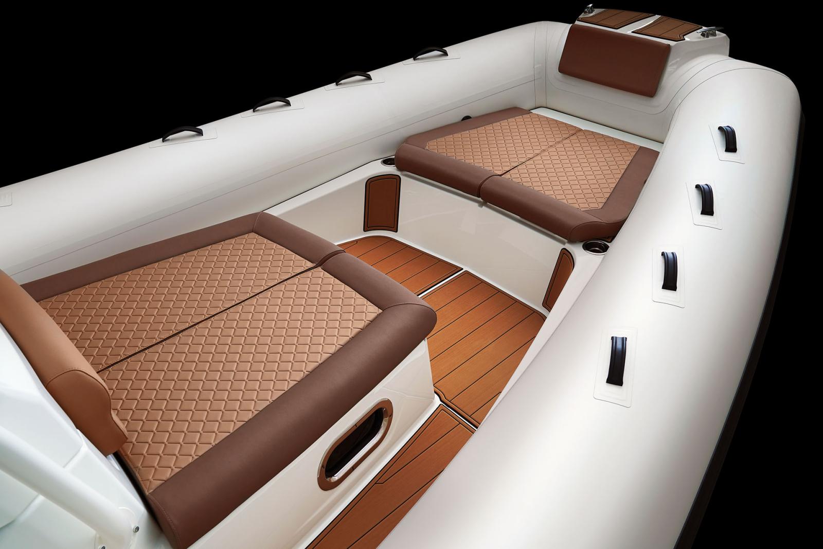 Son grand carré arrière modulable, sa cabine double, son bain de soleil avant et sa kitchenette extérieure en font le semi-rigide idéal pour les sorties en famille ou entre amis.