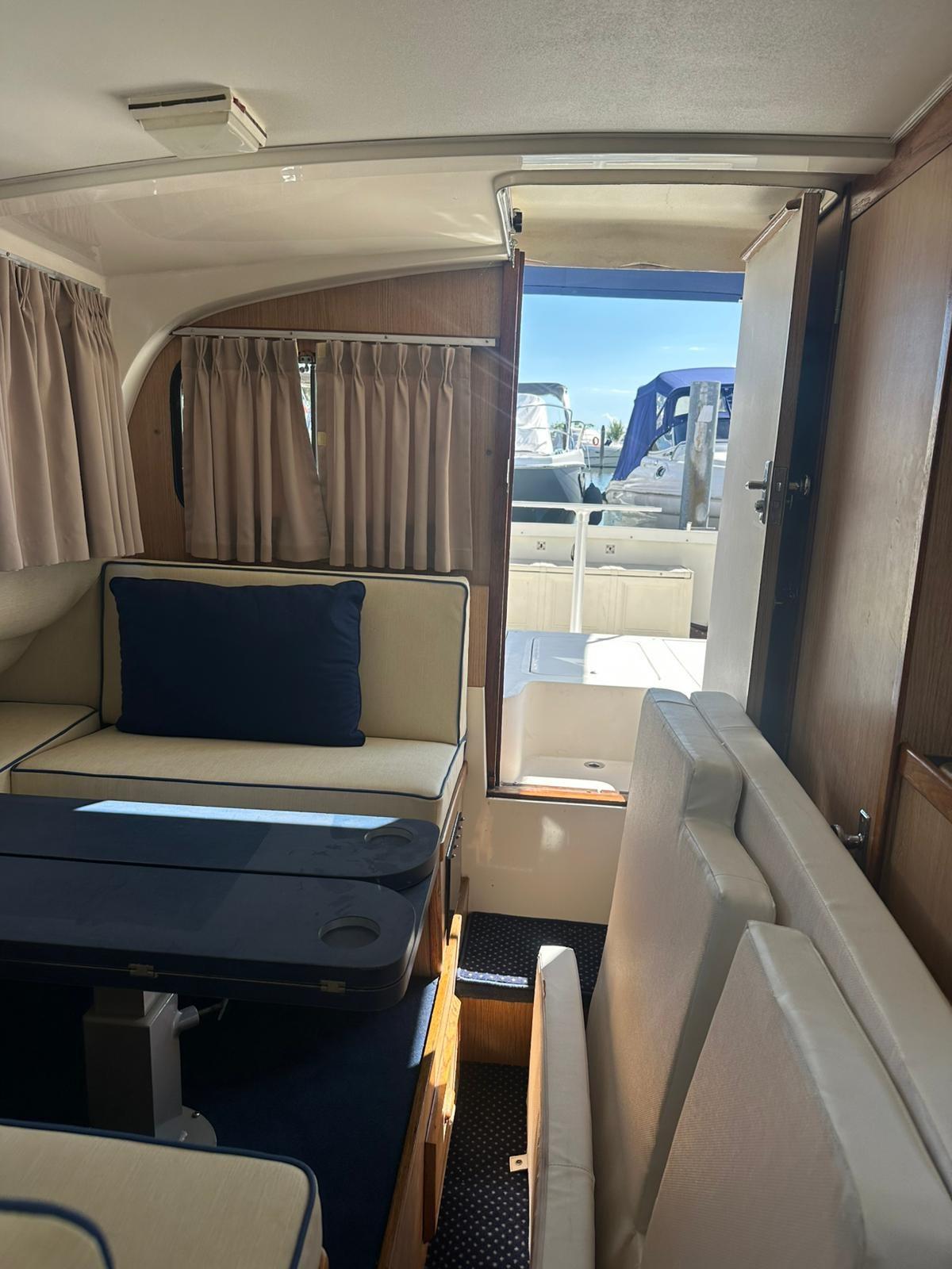 Cabine avec lit double en V - salle à manger décapotable - cuisine.