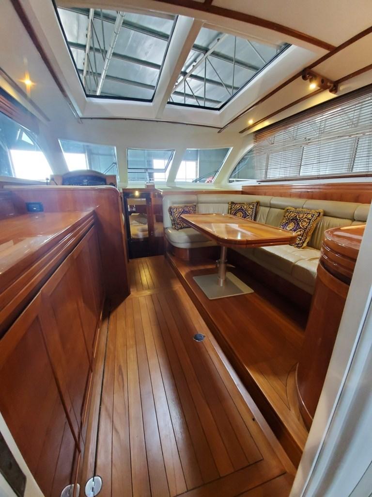 Eau sous pression, Passavant en teck (Nuovi 2021), Chargeur de batterie (Quik), Couleur spéciale (Fiancate Celeste), Douche de cockpit, Propulseur d'étrave (Lewmar), Flaps hydrauliques, Hard top (Apertura elettrica), Extincteur(s) fixe(s) (In sala macchine), Indicateurs de flaps, Éclairage de courtoisie, Plateforme arrière (In teack nuovo 2021 con centrale in carabbotino), Pompe de cale automatique, Cockpit en teck, Prise de quai, Connexion eau sous pression à quai, Guindeau électrique, Echelle de bain, Corne, Winch électrique avant.