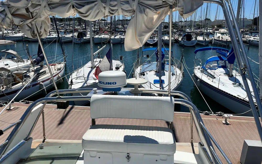 Côté pratique, rien ne manque : réfrigérateur, four, cuisinière, WC marin, circuit 220V, prise de quai, sondeur, GPS, VHF, pilote automatique… Pour la sécurité et la tranquillité d’esprit, vous aurez tout : armement côtier, gilets de sauvetage, défenses, amarres et même les fusées de détresse. Sans oublier le guindeau électrique pour jeter l’ancre sans effort, l’échelle de bain pour plonger en toute liberté, et le porte-cannes pour les mordus de pêche.