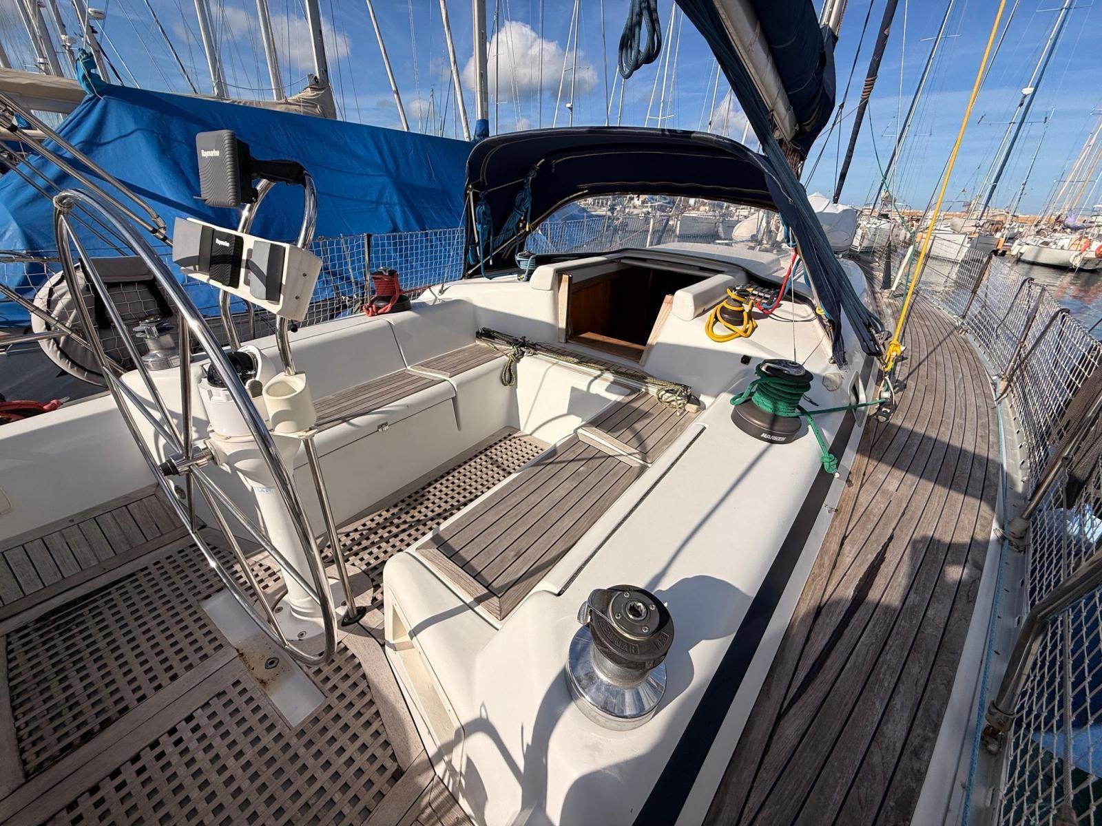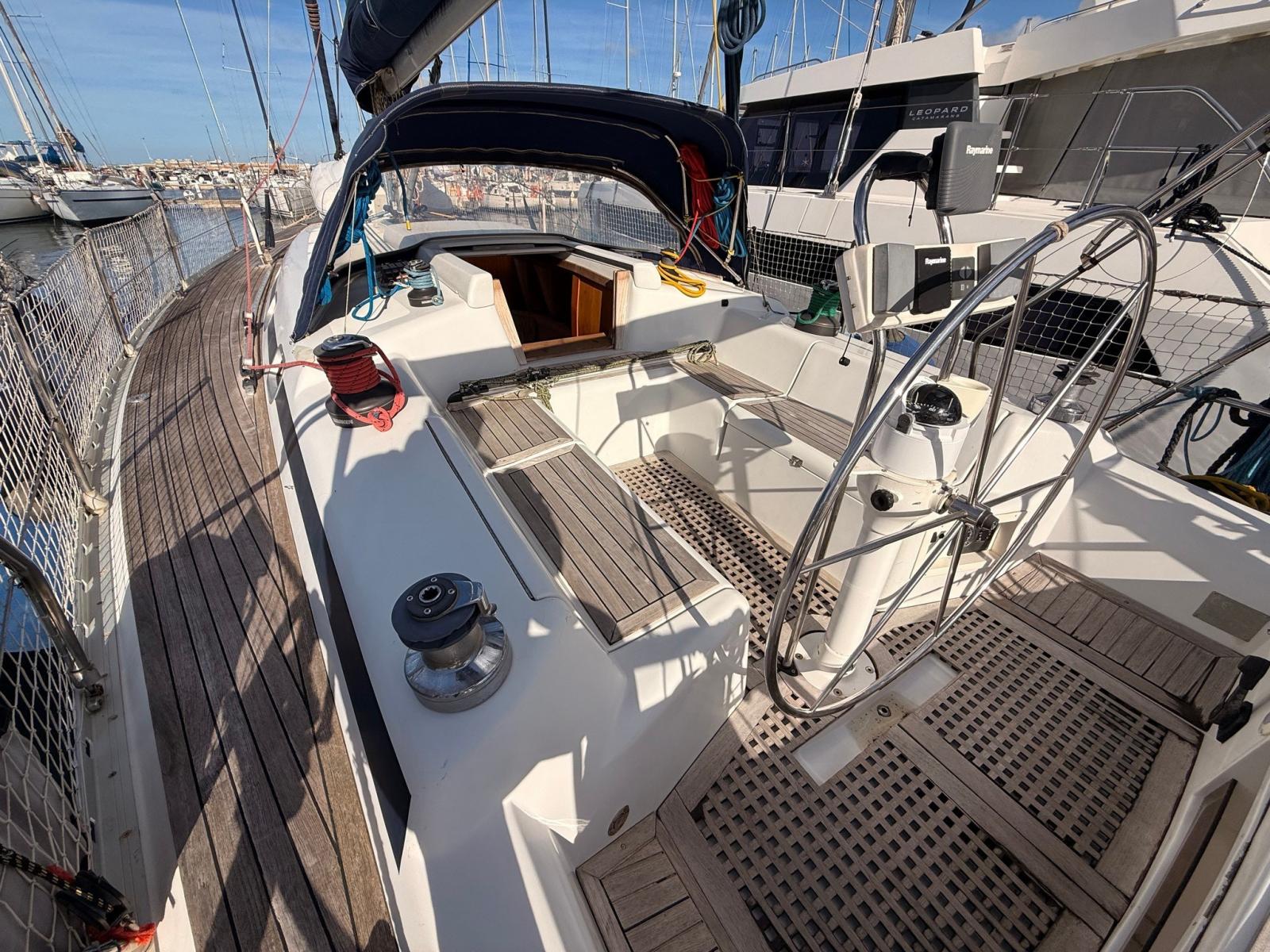 Ancre (ROCNA 25 KG), Eau sous pression, 3 Batteries (1 MOTORE - 2 SERVIZI), Passavant en teck, Chargeur de batterie (VICTRON 2024), Câble d’alimentation à quai, Douche de cockpit, Panneau solaire, Défenses, Passerelle, Pompe de cale manuelle, Pont en teck, Porte latérale, Cockpit en teck, Prise de quai, Guindeau électrique, Gréement monotoron, Chaise support HB, table de cockpit, Table pliante de salon, 6 Winch (4 HARKEN - 2 LEWMAR).