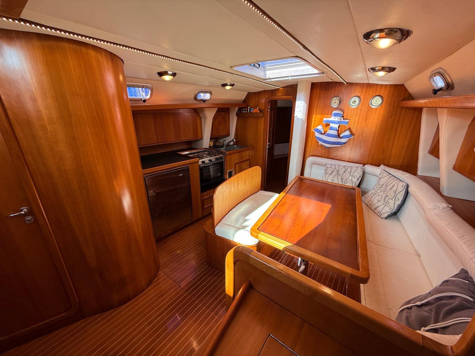 Équipé de : générateur Mase de 2 KW, climatisation avec climatisation réversible, électronique complète Raymarine avec Autopilot 2025, bimini et hotte