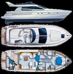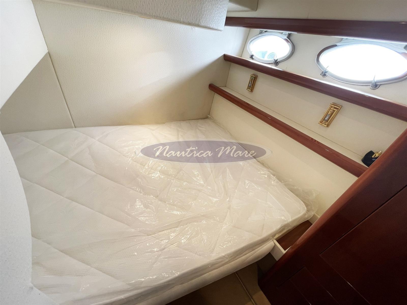 Alarme moteur, Eau sous pression, Douche de cockpit (con miscelatore c/f), Double barre à roue, Flaps hydrauliques, Extincteur(s) fixe(s), Indicateurs de flaps, Passerelle (Opacmare), Plateforme arrière (con rivestimento in teak), Pompe de cale automatique, Pompe de cale manuelle, Porte latérale (Inox e vetro), Cockpit en teck, Prise de quai, Connexion eau sous pression à quai, Répétiteur électronique (sul fly), Rollbar, Guindeau électrique, Echelle de bain, Annexe (Arimar 2,50 chiglia pneumatica e fondo in alluminio + motore Honda 5 hp), Corne, 2 Winch électrique arrière.
