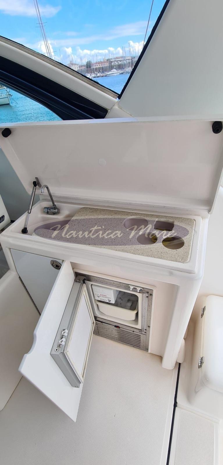 Alarme gaz, Alarme moteur, Alarme de pompe de cale, Ouverture du compartiment moteur électrique, Eau sous pression, Système de vidange, Douche de cockpit, Phares fixes arrière, Flaps hydrauliques, Hard top, Extincteur(s) fixe(s), Lavage de chaine, Lavabo dans le cockpit, Éclairage de courtoisie, Passerelle (carbonio manuale), Plateforme arrière, Pompe de cale automatique, Prise de quai (con avvolgicavo elettrico), Connexion eau sous pression à quai, Rollbar, Guindeau électrique, Echelle de bain, table de cockpit, Table pliante de salon, Annexe (2,65 mt. chiglia gonfiabile + Mercury 3,5 hp), Corne, Winch électrique avant.