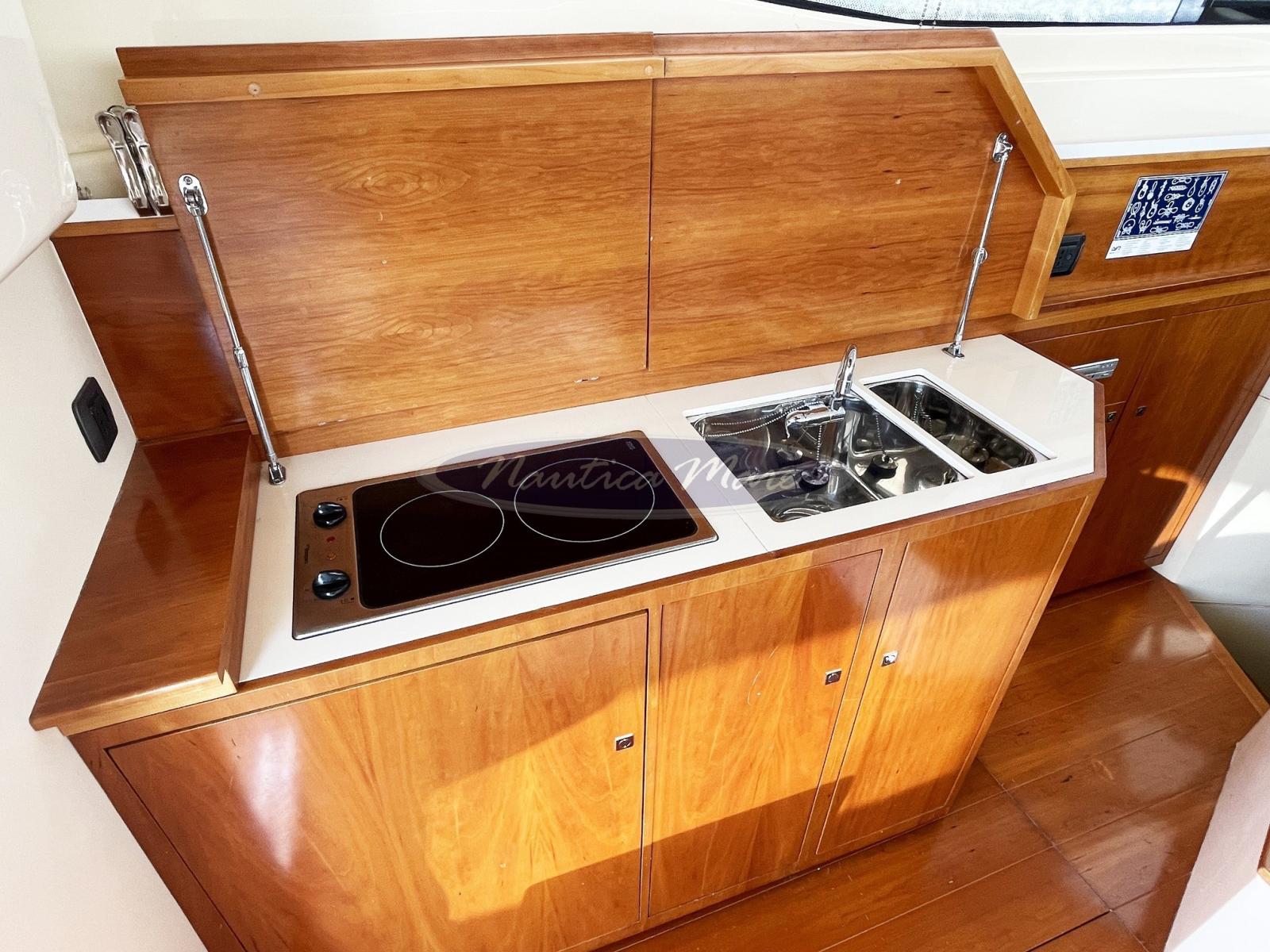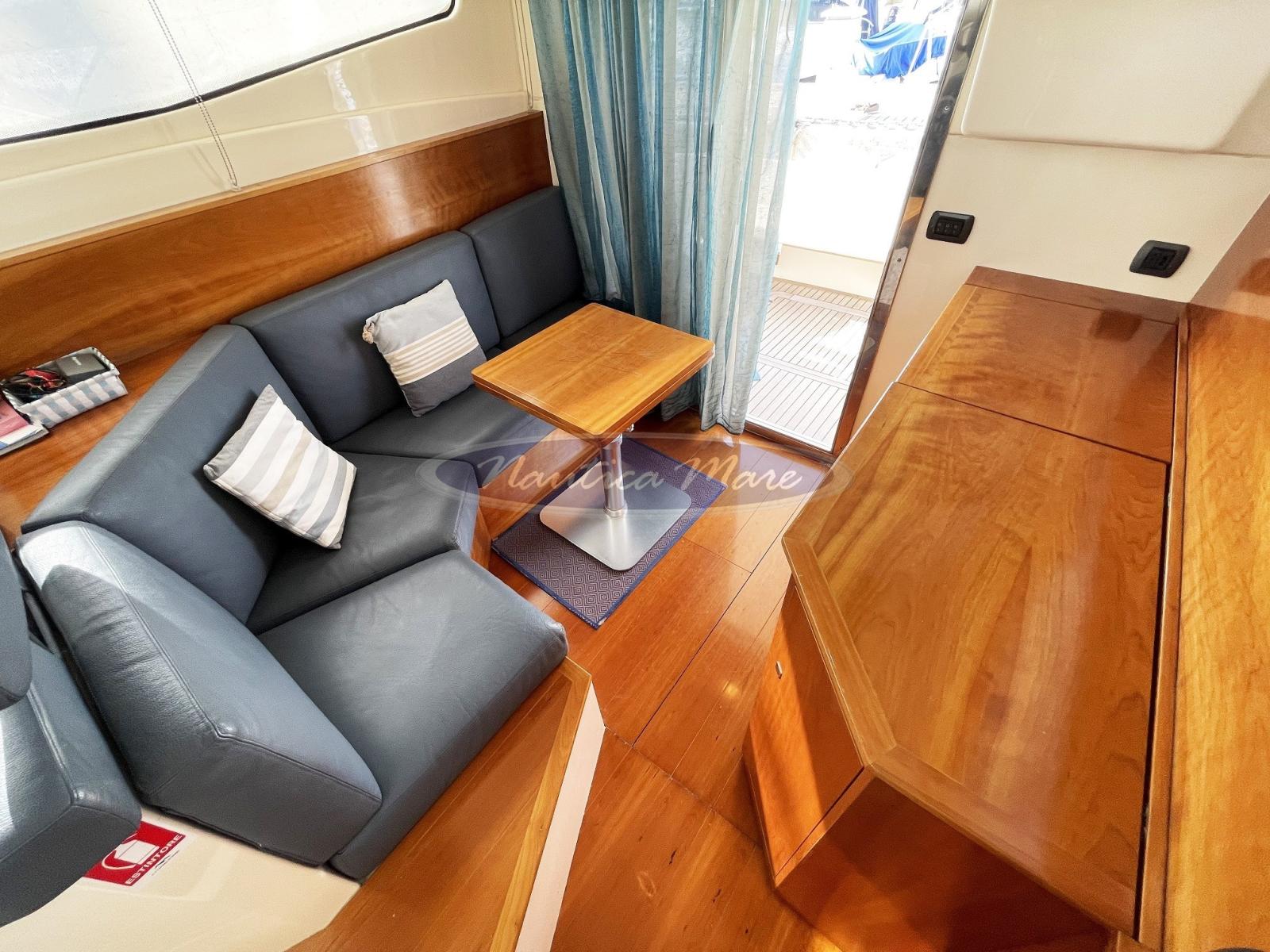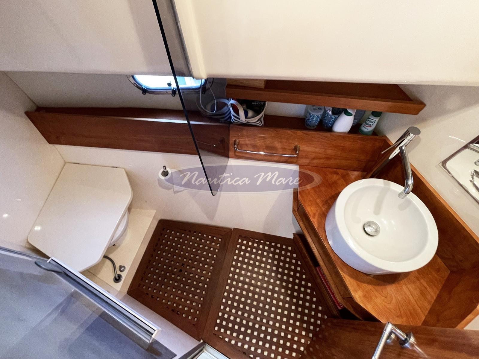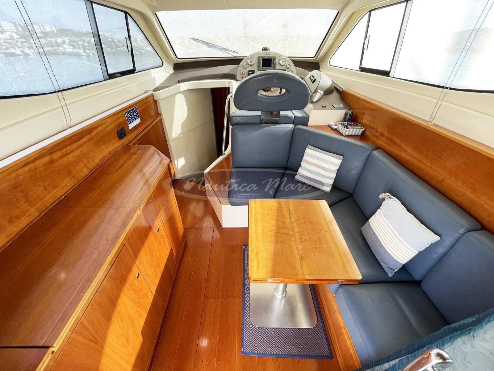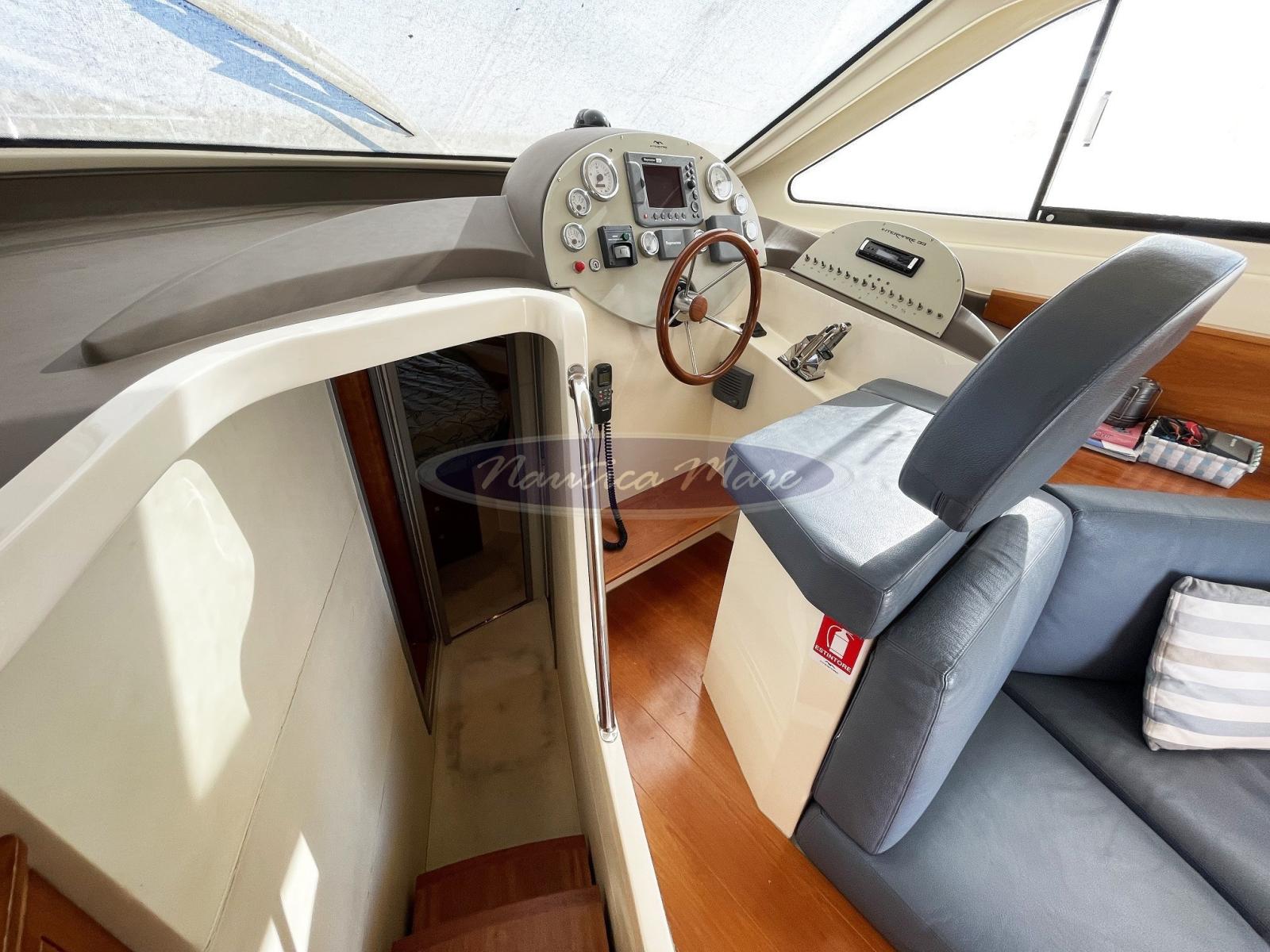 Alarme moteur, Ancre (10 kg. con cima e catena), Eau sous pression, Système de vidange, Douche de cockpit (con miscelatore c/f), Double barre à roue (con elettronica completa), Flaps hydrauliques (Bennett), Extincteur(s) fixe(s), Éclairage de courtoisie, Passerelle (Opacmare Inox + Teak), Plateforme arrière (maggiorata con rivestimento in teak), Pompe de cale automatique, Pompe de cale manuelle, Porte latérale (Inox + vetro), Cockpit en teck, Prise de quai, Connexion eau sous pression à quai, Rollbar, Guindeau électrique (Quick 2024), Echelle de bain, Annexe (Arimar + motore Suzuki 2,5 hp), Corne.