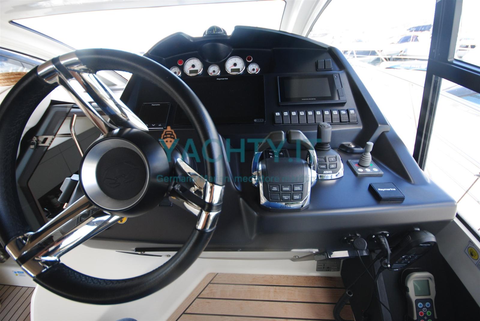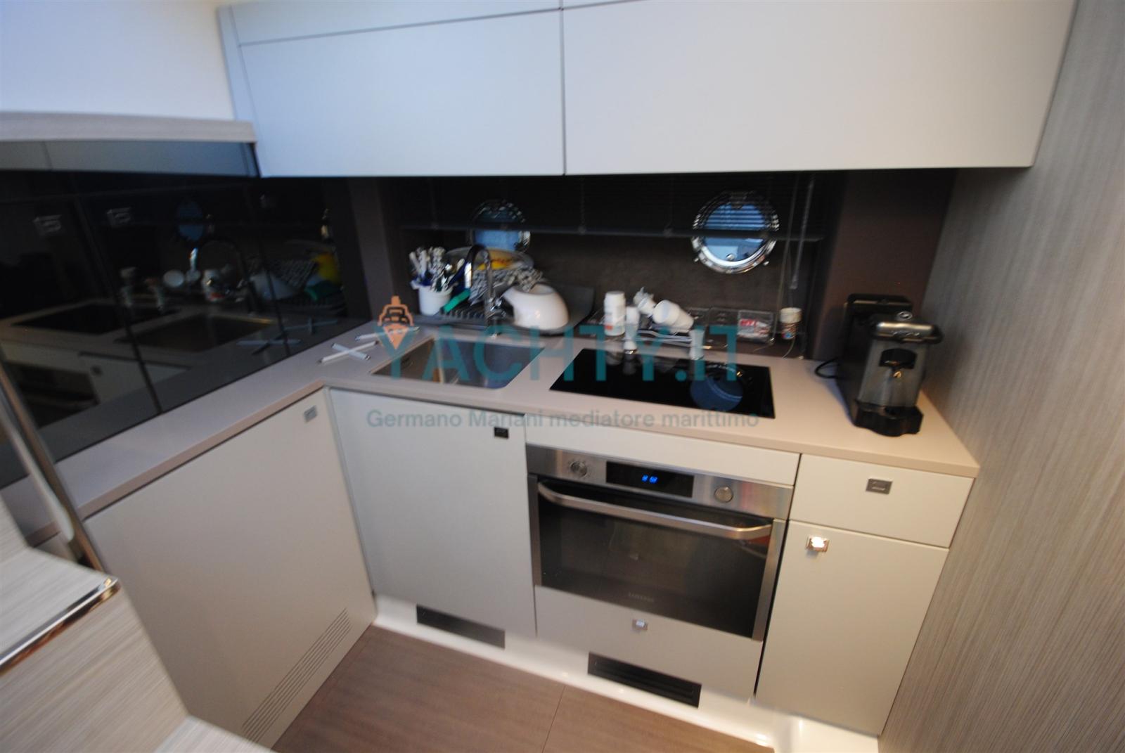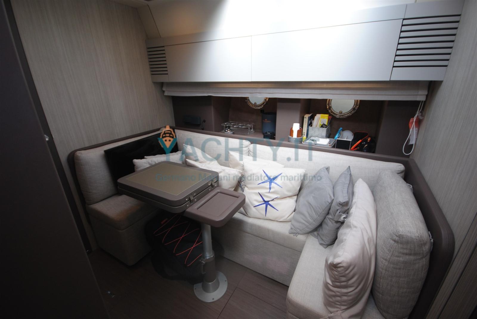 2 cabines et 2 salles de bains, bien équipées avec climatisation, toit rigide à ouverture électrique, teck dans le cockpit, garage pour annexe. Grand bain de soleil arrière, manœuvre par joystick. Excellente habitabilité, idéale pour les croisières en famille ou entre amis.