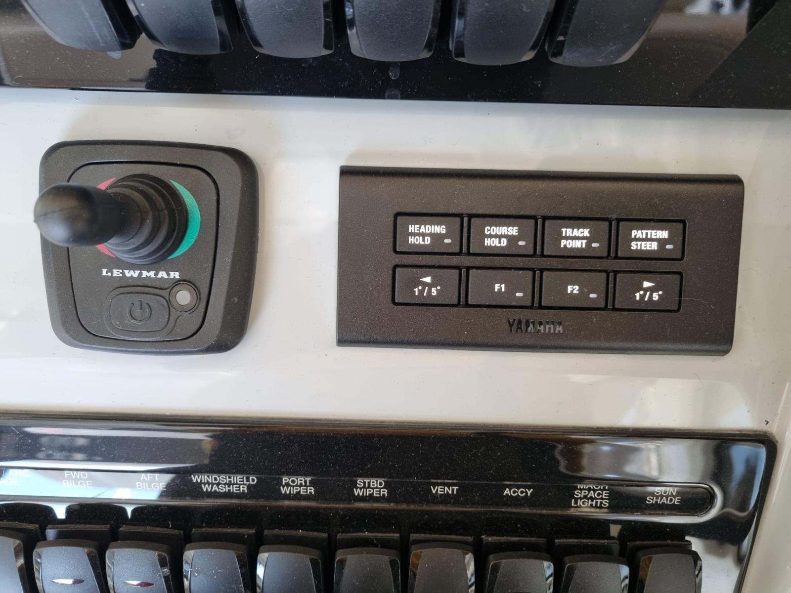 Indicateur d'angle de barre, Commande électrique, Compteur de chaîne, Pilote automatique (YAMAHA), Plotter GPS (DOPPIO GARMIN 16”), Radio VHF (GARMIN).