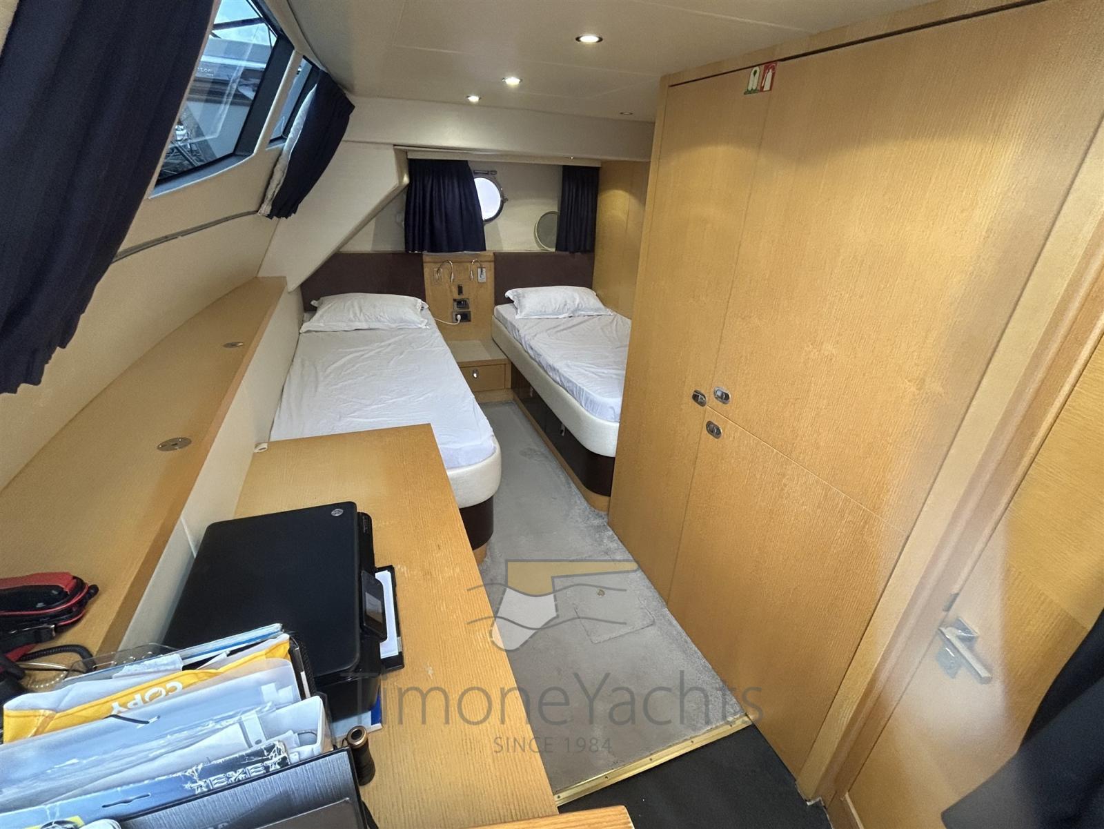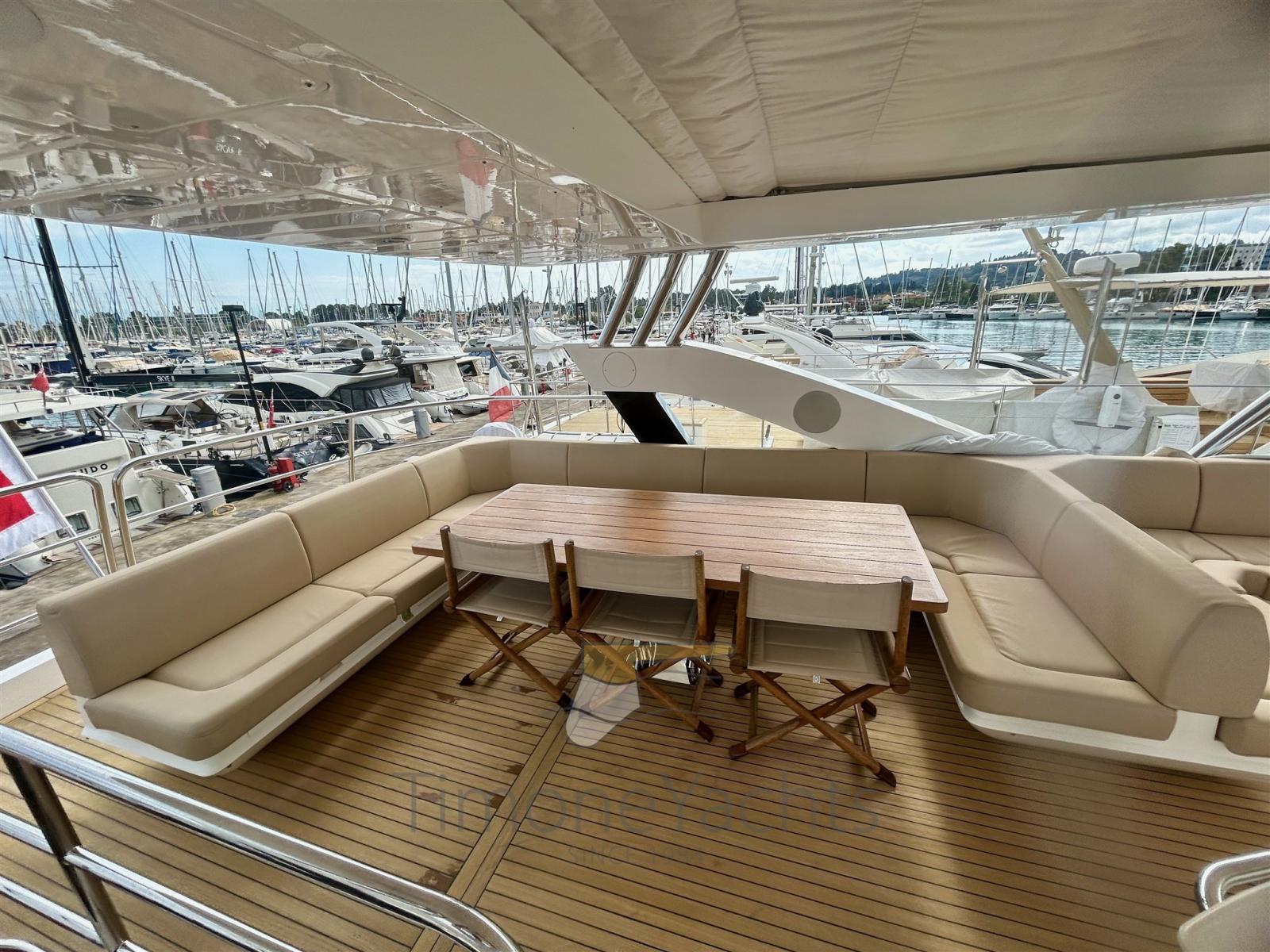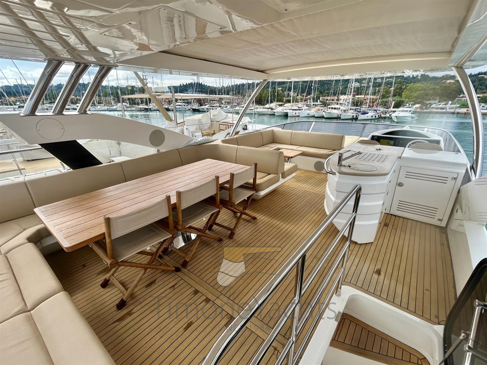 Passavant en teck, Câble d’alimentation à quai, Douche de cockpit, Phare de poursuite, Flaps hydrauliques, Hard top, Extincteur(s) fixe(s), Indicateurs de flaps, Lavage de chaine, Éclairage de courtoisie, Spots sous-marins, Passerelle, Pont en teck, Porte latérale, Cockpit en teck, Stabilisateurs (Side Power fins (underway + zero speed)), table de cockpit, Annexe (Sur Marine ST 400 + Yamaha F40 (both new 2015)), Corne, Winch électrique arrière, Winch électrique avant.