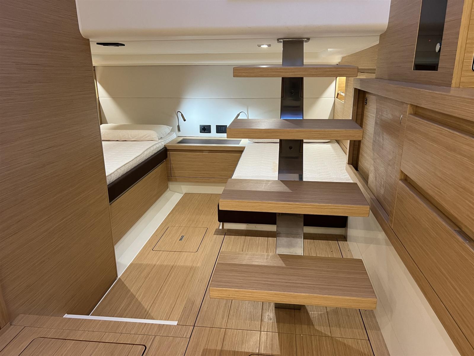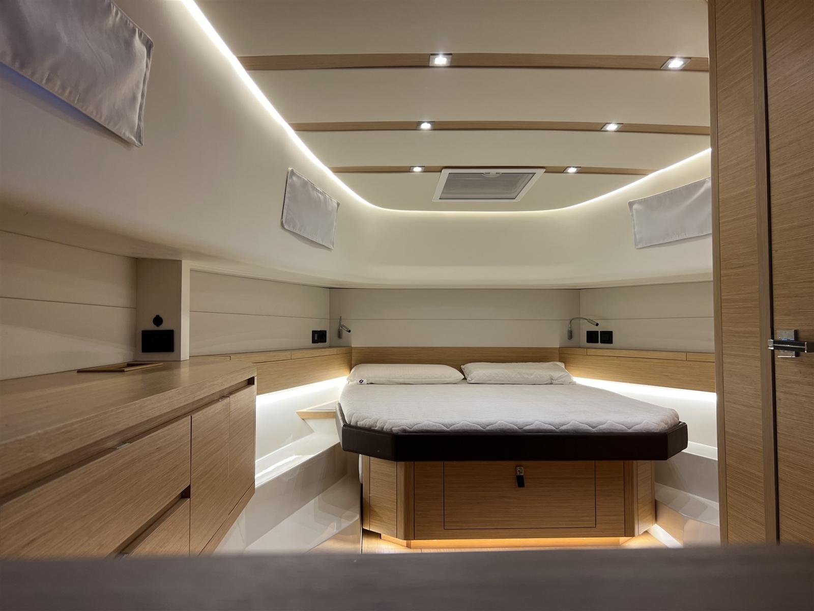 Ancre (TREFOIL), Auto Dynamic Trim Interceptor (VOLVO INTERCEPTOR SYSTEM), Douche de cockpit, Garage à annexe, Extincteur(s) fixe(s), Éclairage de courtoisie, 8 Défenses, Passerelle (IDRAULICA), Plateforme arrière (SISTEMA IDRAULICO SALI SCENDI), Pont en teck (FLAXITEAK), Cockpit en teck (FLEXITEAK), Prise de quai, Guindeau électrique, Stabilisateurs (QUICK 7K), table de cockpit (ABBATTIBILE ELETTRICO), T-Top (CARBONIO).