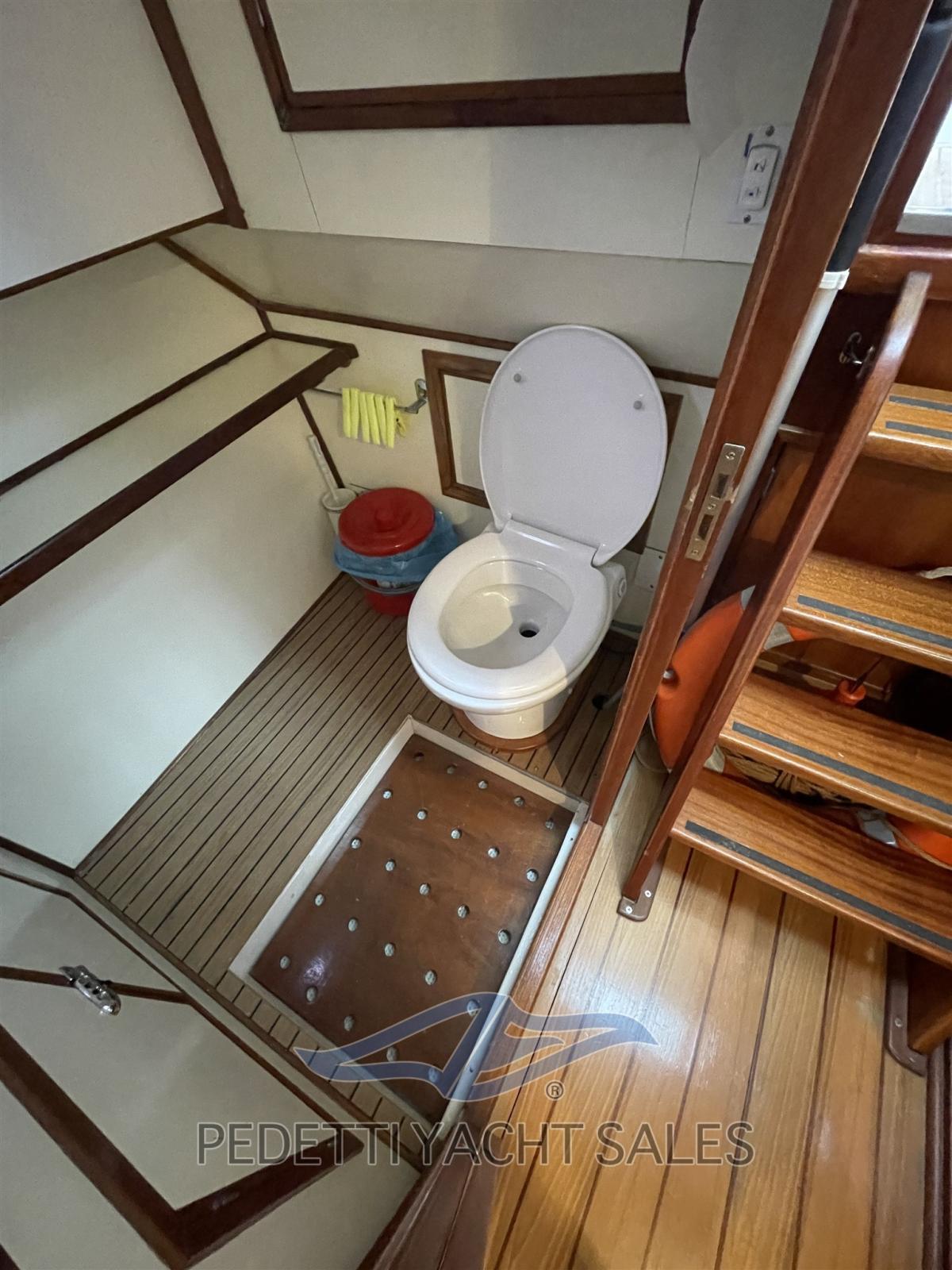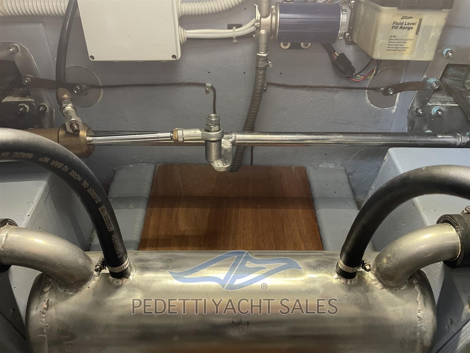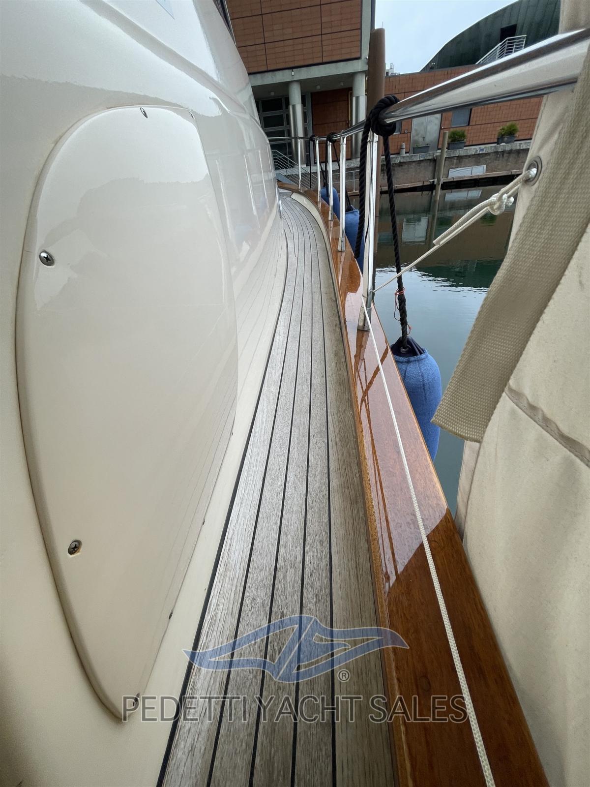 Alternateur, Ouverture du compartiment moteur électrique, Eau sous pression, Douche de cockpit, Phare de poursuite, Lavabo dans le cockpit, Passerelle, Pont en teck, Cockpit en teck, Prise de quai, Guindeau électrique, Echelle de bain, table de cockpit.