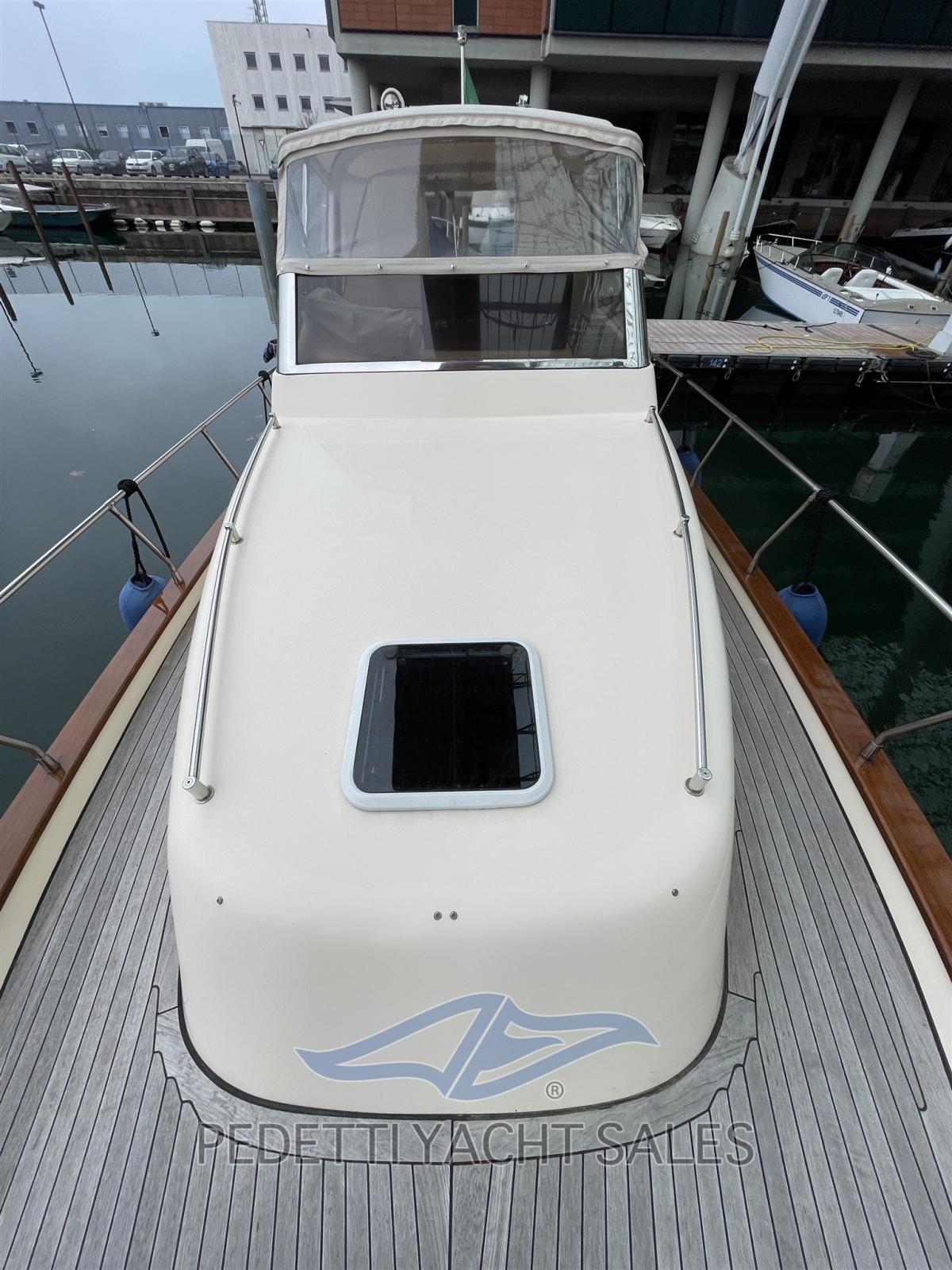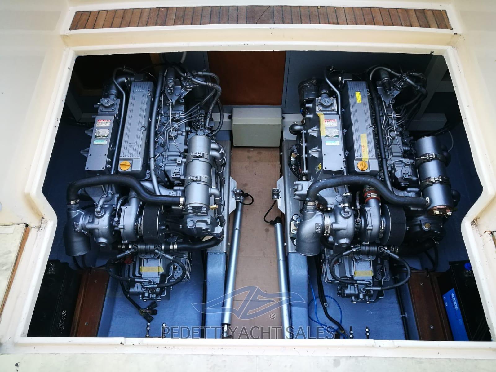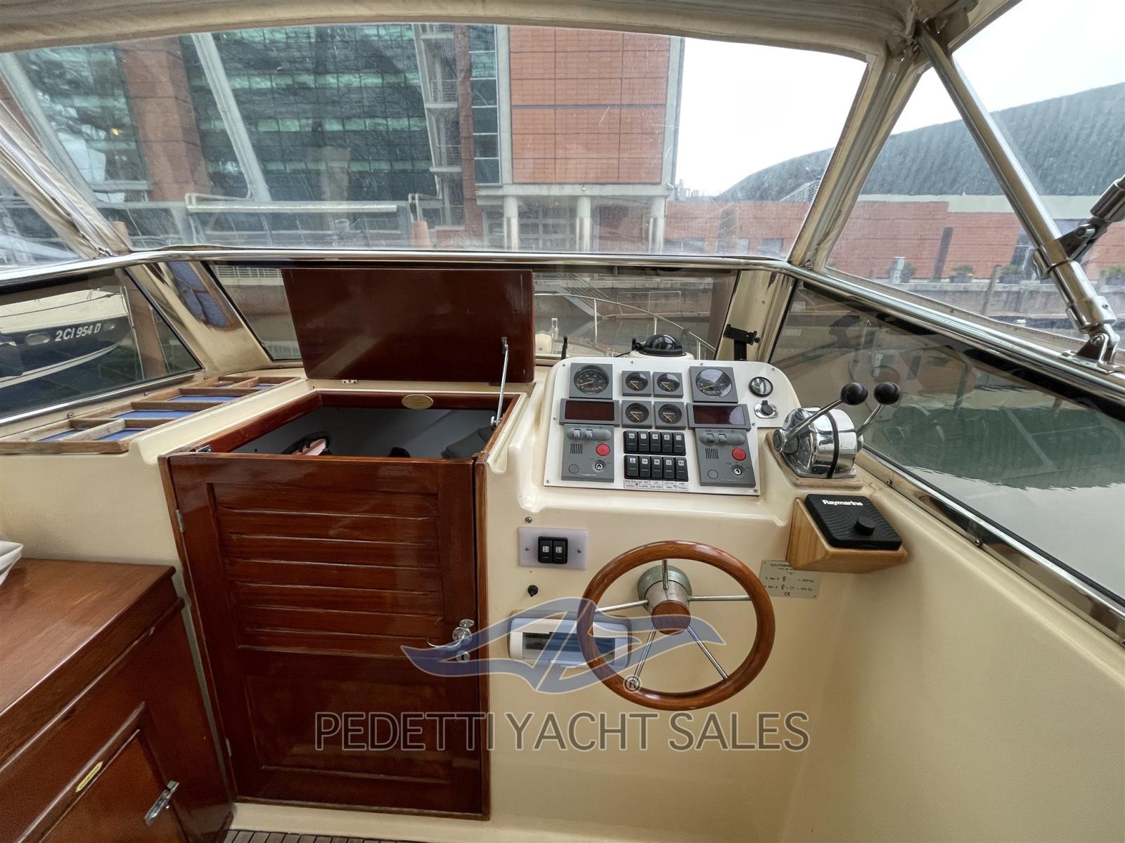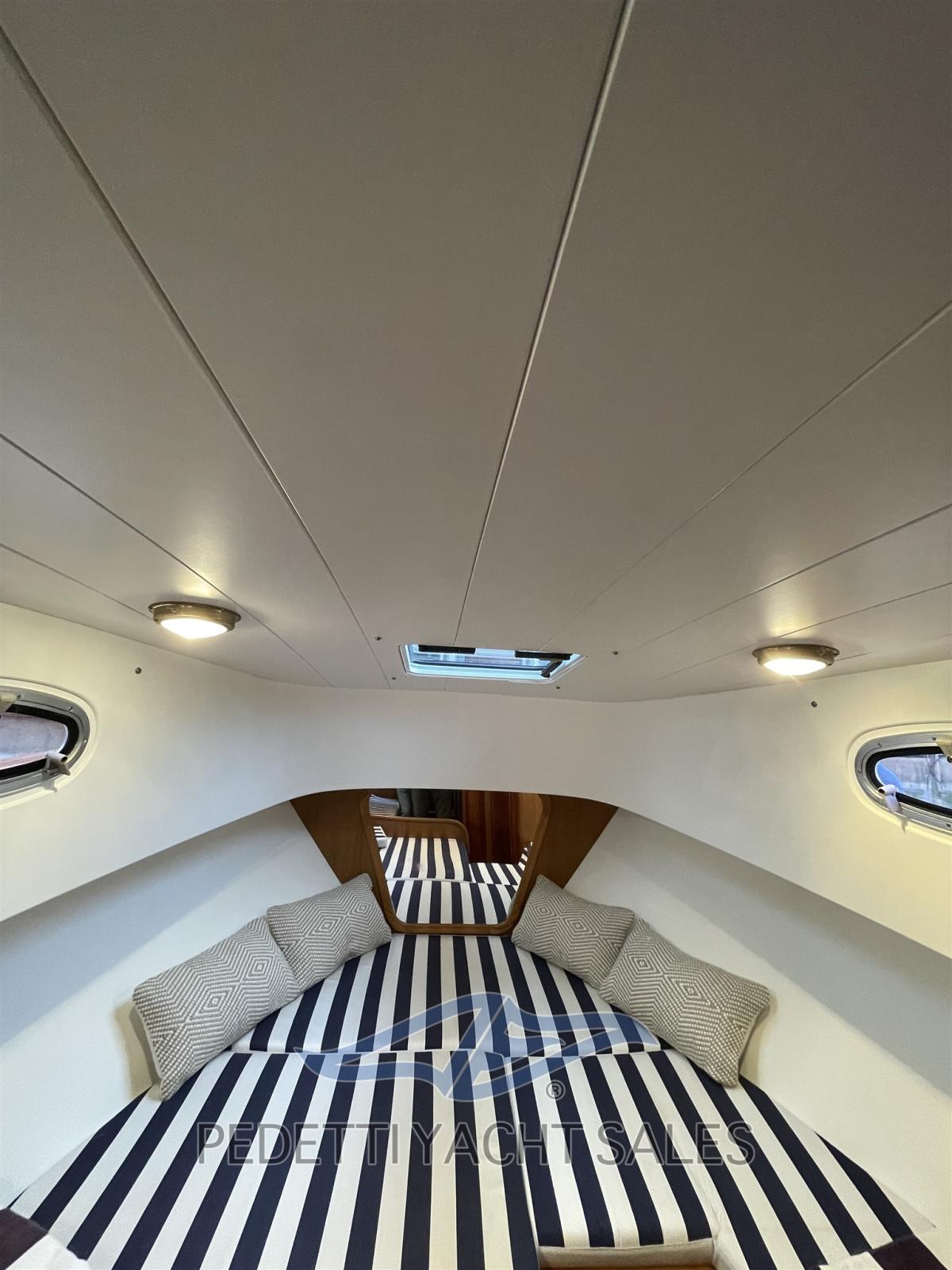 Alternateur, Ouverture du compartiment moteur électrique, Eau sous pression, Douche de cockpit, Phare de poursuite, Lavabo dans le cockpit, Passerelle, Pont en teck, Cockpit en teck, Prise de quai, Guindeau électrique, Echelle de bain, table de cockpit.