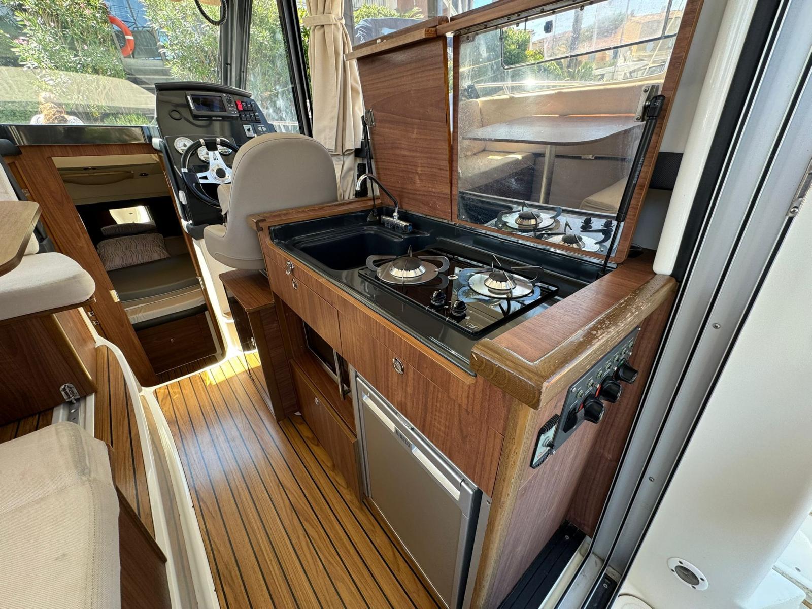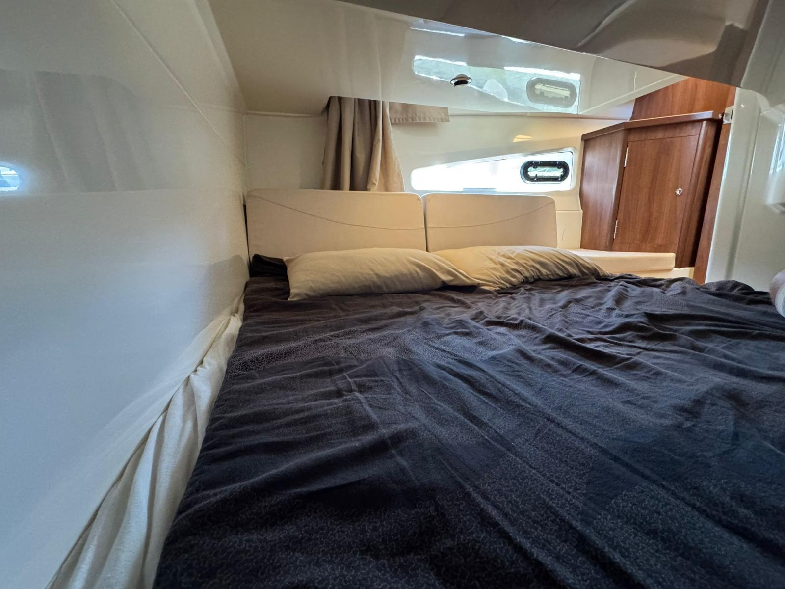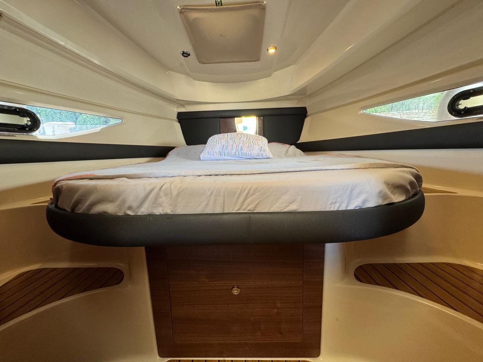Motorisé par 2 Mercury F150 Verado 150 ch (350 h), révisés en juillet 2025, il assure une navigation fiable et agréable. Le propulseur d’étrave et les flaps neufs facilitent les manœuvres. Atout rare : possibilité de reprendre la place au Port Cogolin, payée jusqu’en mars 2026.