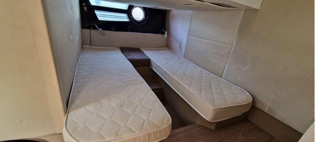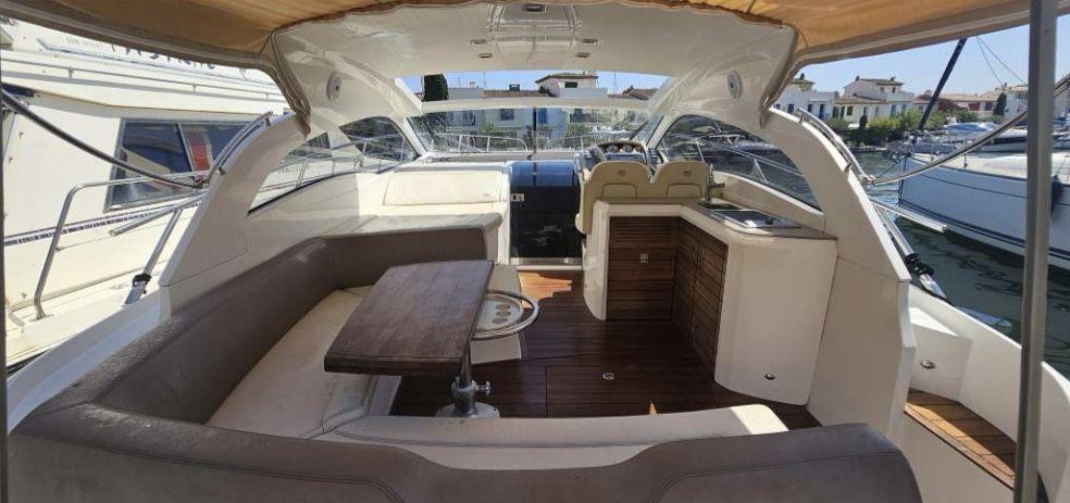 Le bateau offre un confort optimal : climatisation, cuisine intérieure, 2 frigos, plancha extérieure, toit ouvrant électrique, annexe gonflable et armement complet catégorie B. Les réservoirs contiennent 910 L de carburant et 286 L d’eau douce, avec 110 L pour les eaux usées.
