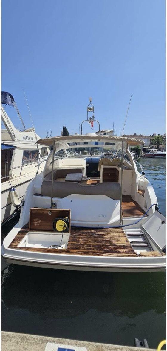 Ce Sessa C38 de 2010, en excellent état, est un cruiser à moteur haut de gamme, idéal pour la croisière côtière ou les sorties en famille et entre amis. Mis à l’eau seulement 1 mois par an, le reste du temps à terre sous cocon, il affiche très peu d’heures moteur (450 h) avec un entretien annuel complet réalisé par Volvo (factures disponibles).