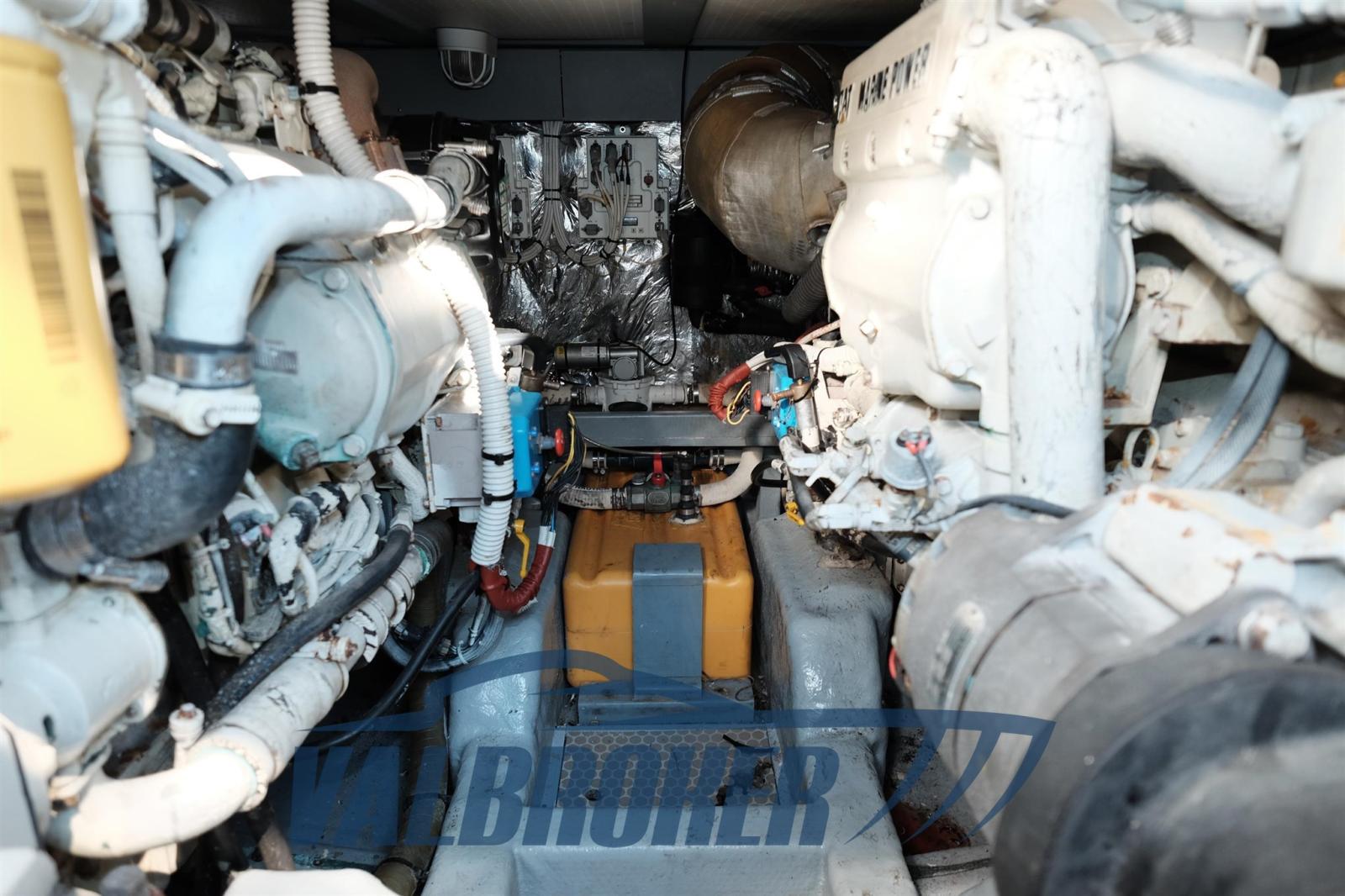 Chantier naval italien historique, synonyme de robustesse et de fiabilité dans le temps. Flybridge aux dimensions généreuses : cabine principale à l’avant et deux cabines doubles à l’arrière avec deux salles de bains. Propulsé par une transmission par arbre 2x460 Caterpillar C7 avec seulement 480 heures de fonctionnement. Par l’entretien des moteurs, l’antifouling et le polissage effectués annuellement sur facture disponible. FULL OPTIONNEL : Climatisation, générateur, propulseur d’étrave, cockpit et plate-forme en teck. Au nom d’une entreprise, facturable. Echange possible avec OPEN récent, maximum 10 mètres.