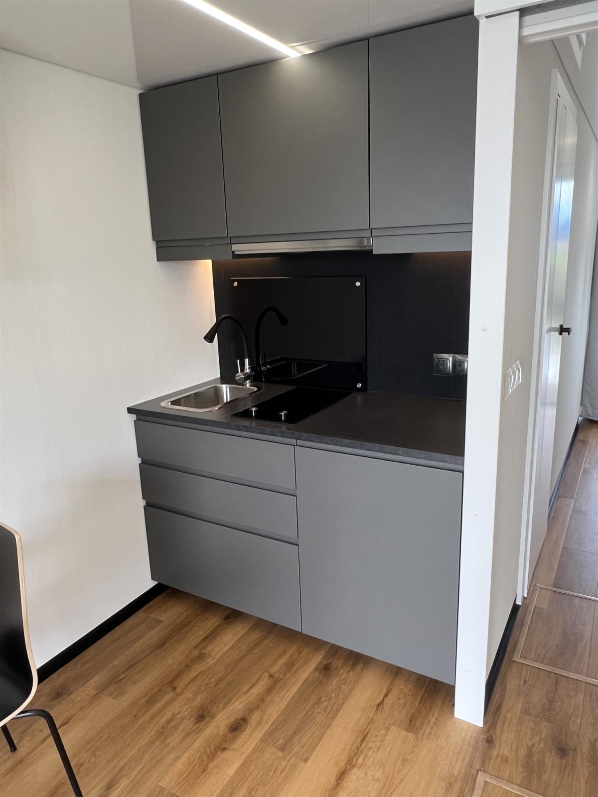 Installation sanitaire : hydropompe, chauffage électrique 60 l, réservoir d’eau douce - 400 litres, réservoir d’eaux grises -
