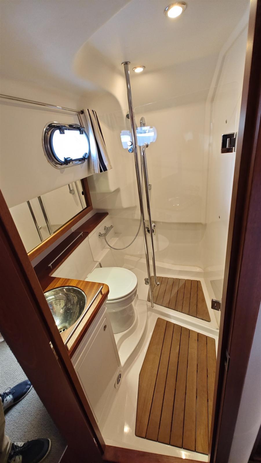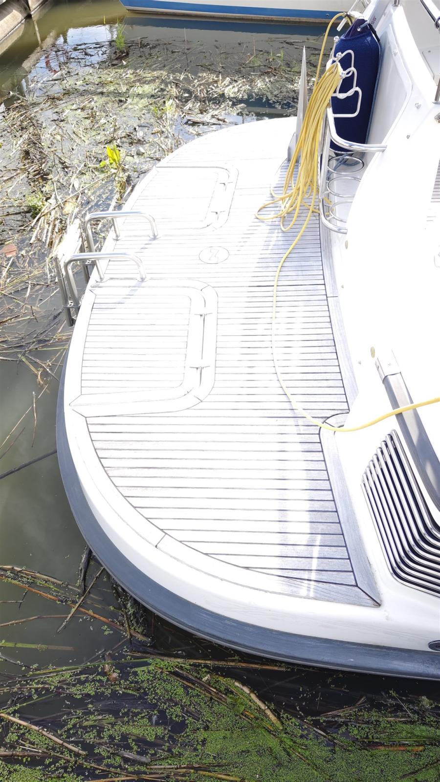 Ancre (Edelstahl, 10m Edelstahlkette & 30m Leine), Passavant en teck, Phare de poursuite (fernbedienbar), Flaps hydrauliques, Prise de quai (220V), Guindeau électrique.