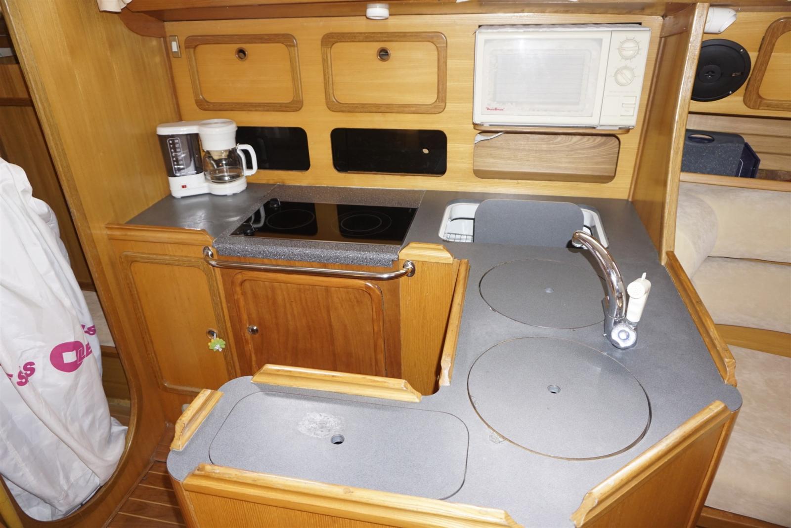 Douche de cockpit, Ber, Moteur hors-bord pour annexe (2 hp), Panneau solaire, Passerelle, Pompe de cale manuelle, Cockpit en teck, Prise de quai, Guindeau manuel, Echelle de bain, Annexe, Windex.