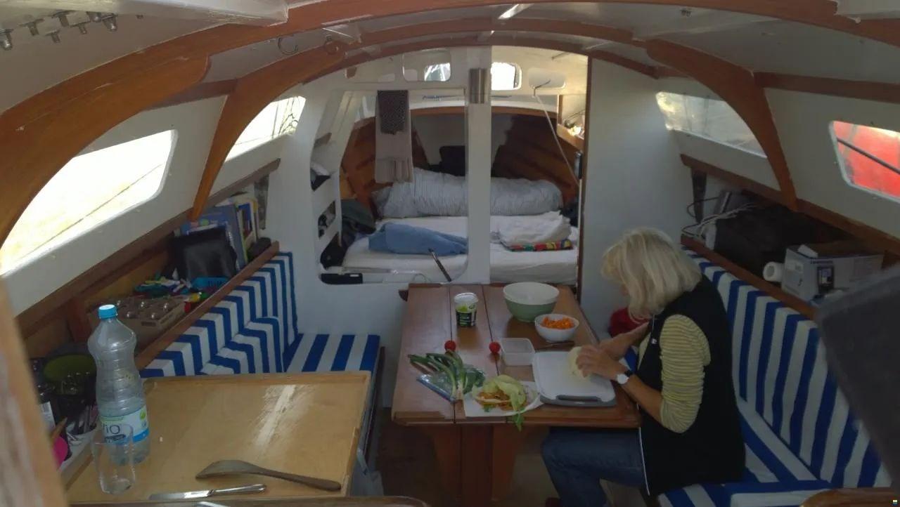 THEA est une voiture moderne (1980 !) Construction en bois cauris/époxy, peau extérieure déjà recouverte de fibre de verre/époxy lors de la construction - construite en Nouvelle-Zélande. Nouveau mât Selden 2012, foc autovireur Elvström 2017, manufacture de voiles brutes lattes 2020 (grosse tête - arbre raccourci en support targa), transpondeur AIS. Gouvernail partiellement équilibré (fait maison selon Nissen crack), intérieur comme neuf changé en 2015. Targabügel - écoute de grand-voile allemande.