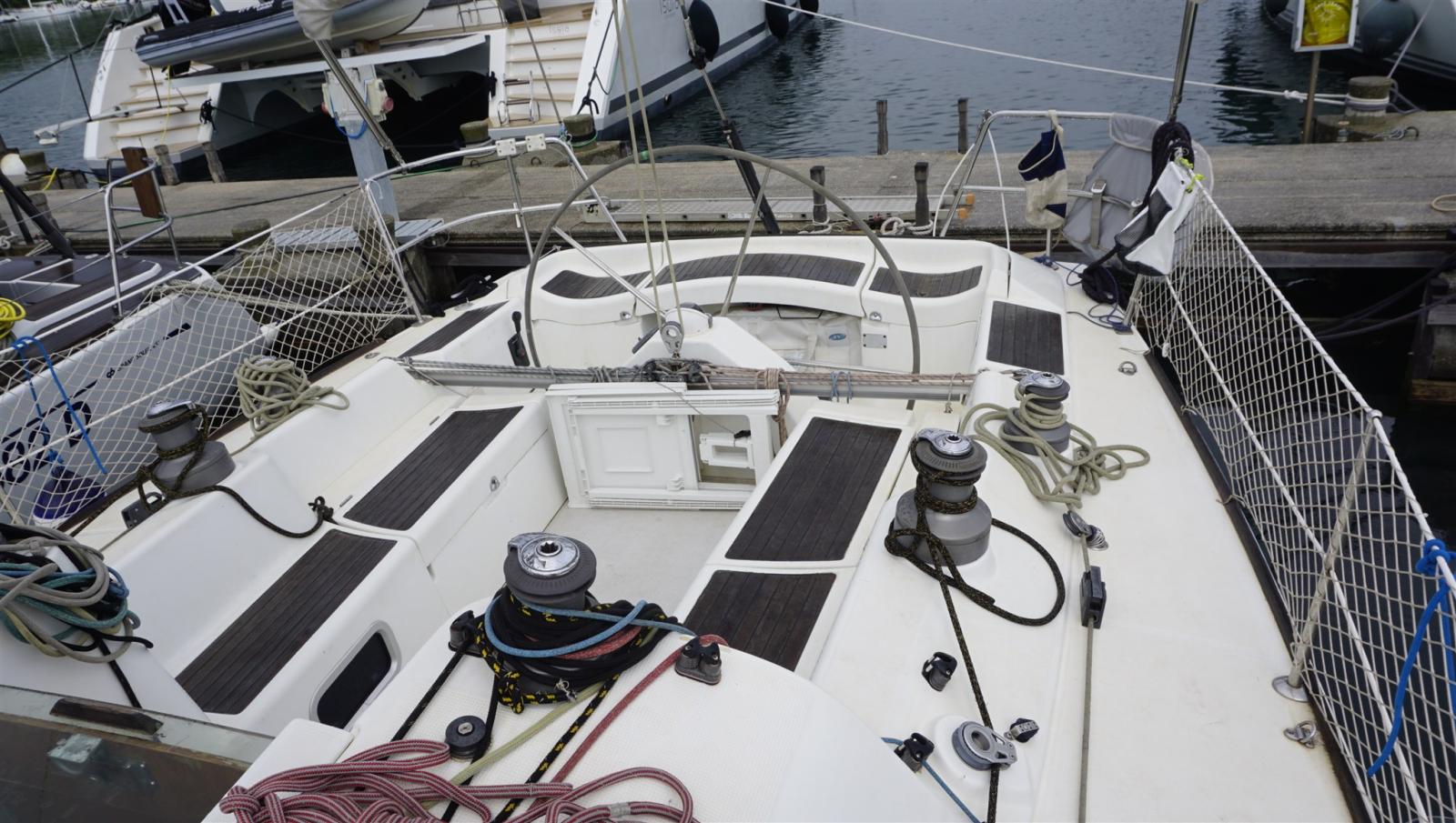 Alarme moteur, Ancre (DELTA + SPARE), Douche de cockpit, Passerelle, Pompe de cale manuelle, Prise de quai, Répétiteur électronique, Guindeau électrique, Gréement Rod, Echelle de bain, Tuff Luff, Winch (x6 LEWMAR), Windex.