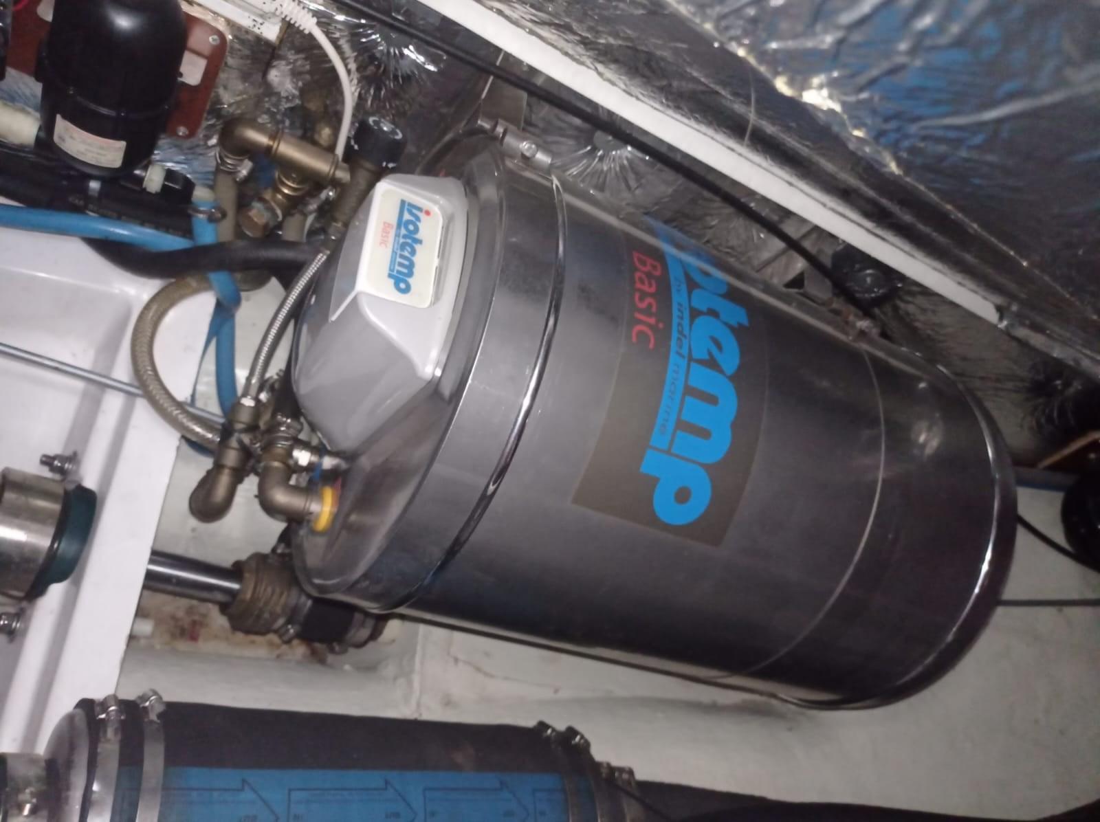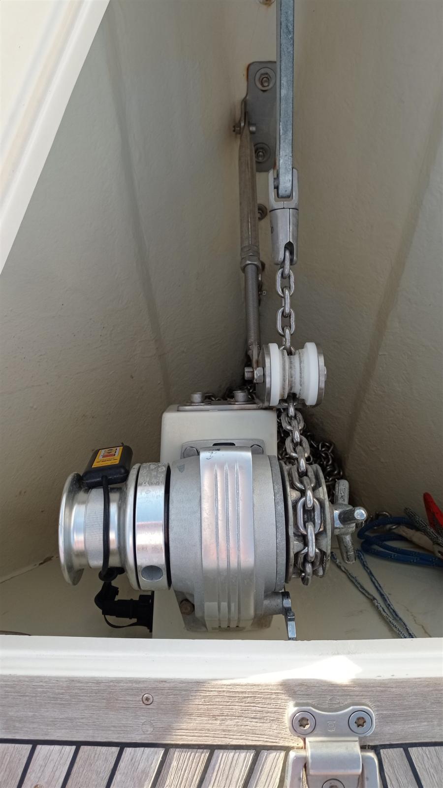 Ancre (BRUCE Inox), Eau sous pression, Batteries (AGM VICTRON Ah 390), Chargeur de batterie (VICTRON 50 Amp + 30 Amp 2023), Douche de cockpit, Propulseur d'étrave (SLEIPNER SP95), Panneau solaire, Passerelle, Pompe de cale manuelle, Pont en teck, Prise de quai, Guindeau électrique (+ 50 m chian Inox), Echelle de bain, table de cockpit, Corne (WEMPE), Winch (x3 28ST SINGLESPEED INOX ANDERSEN), Winch électrique (x1 28ST SINGLESPEED INOX ANDERSEN + 2x 2 x 52ST TWOSPEED INOX ANDERSEN), Windex.