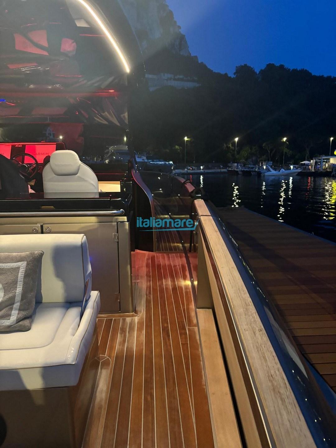 Accessoires principaux : Climatisation - GPS - Instrumentation GARMIN - Cockpit en teck - Passerelles latérales en teck - Table cockpit en teck - Plateforme hydraulique en teck - Pilote automatique - T-top - Stéréo