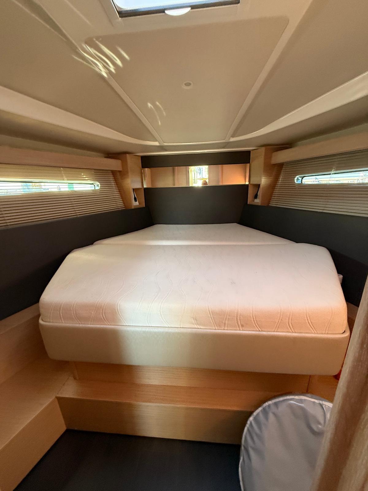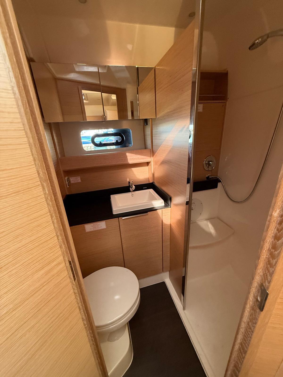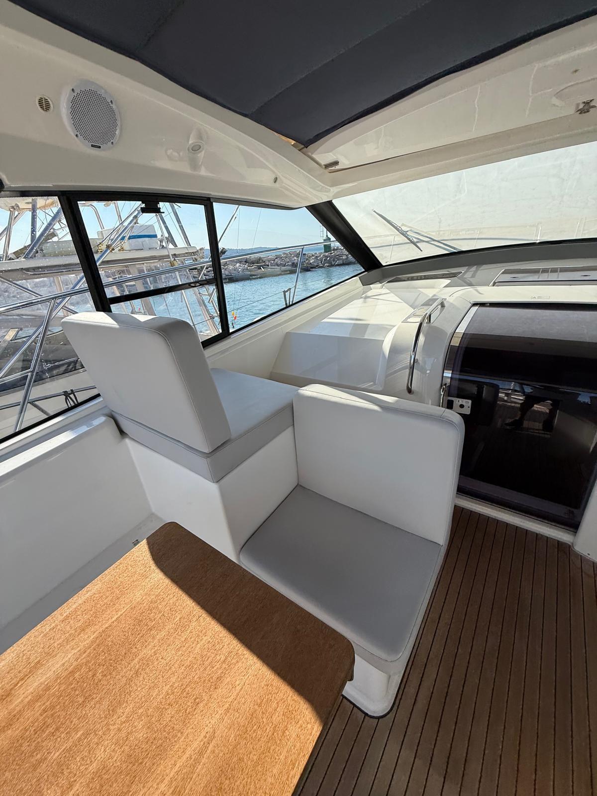 Alarme gaz, Alarme moteur, Alarme de pompe de cale, Filères, Douche de cockpit, Flaps électriques, Hard top, Lavabo dans le cockpit, Défenses, Porte latérale, Cockpit en teck, Prise de quai, Guindeau électrique, Echelle de bain, Corne.