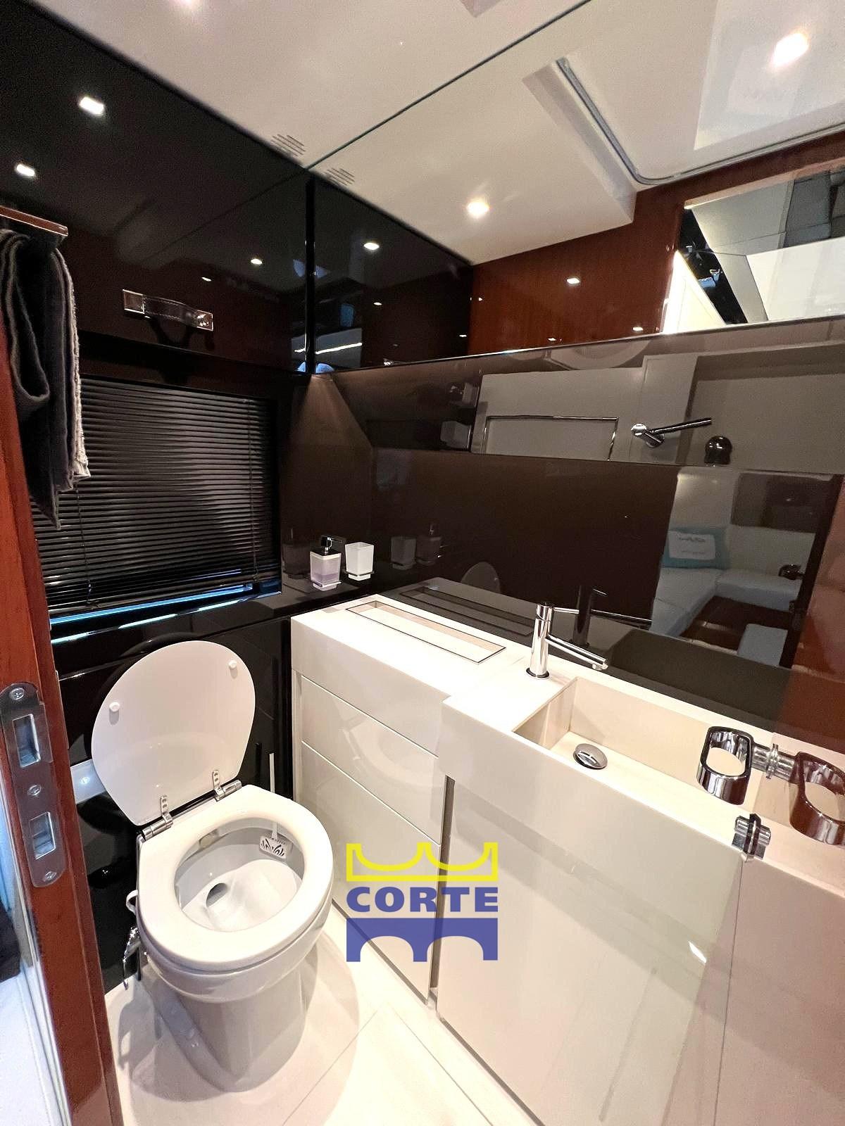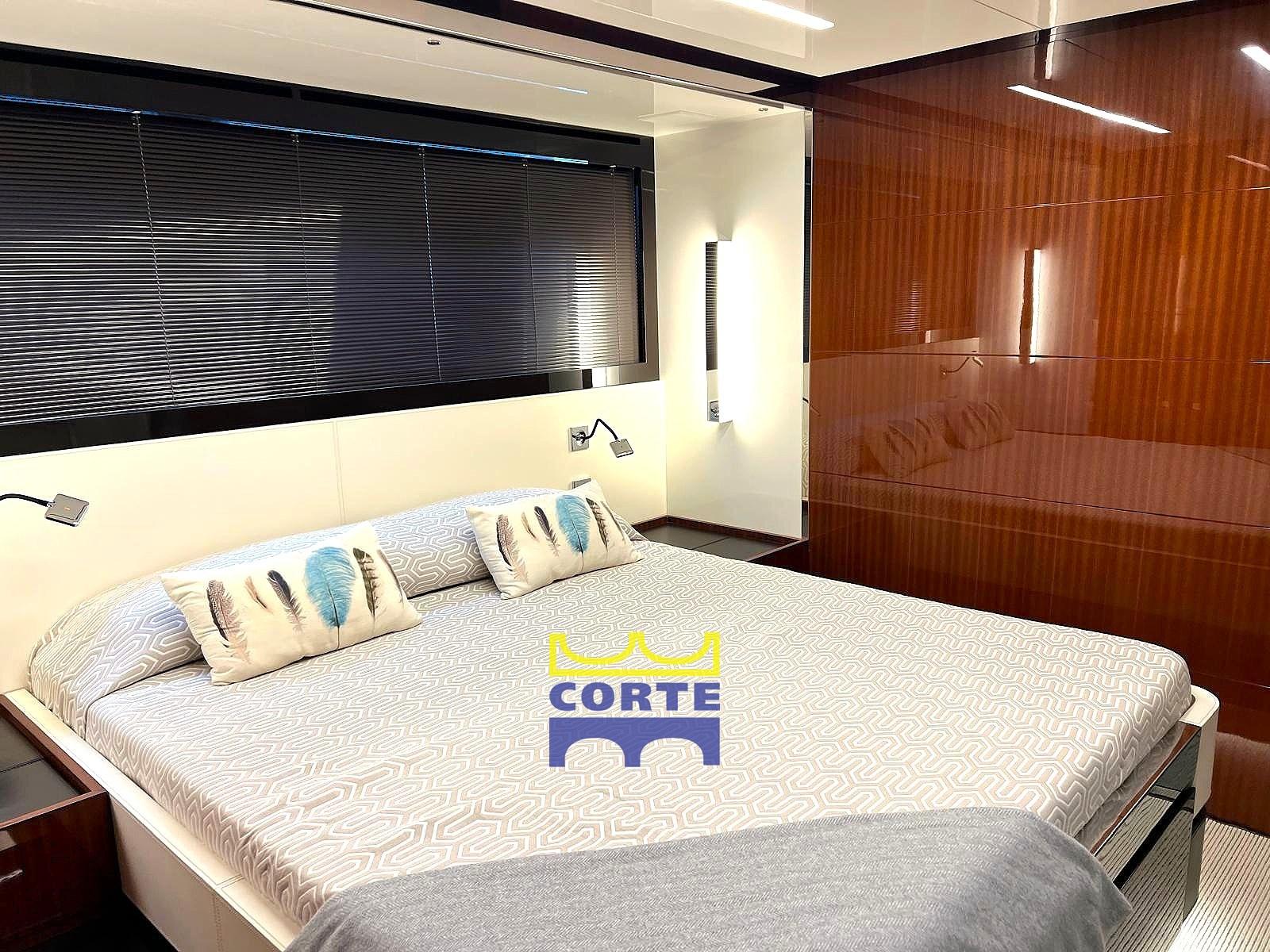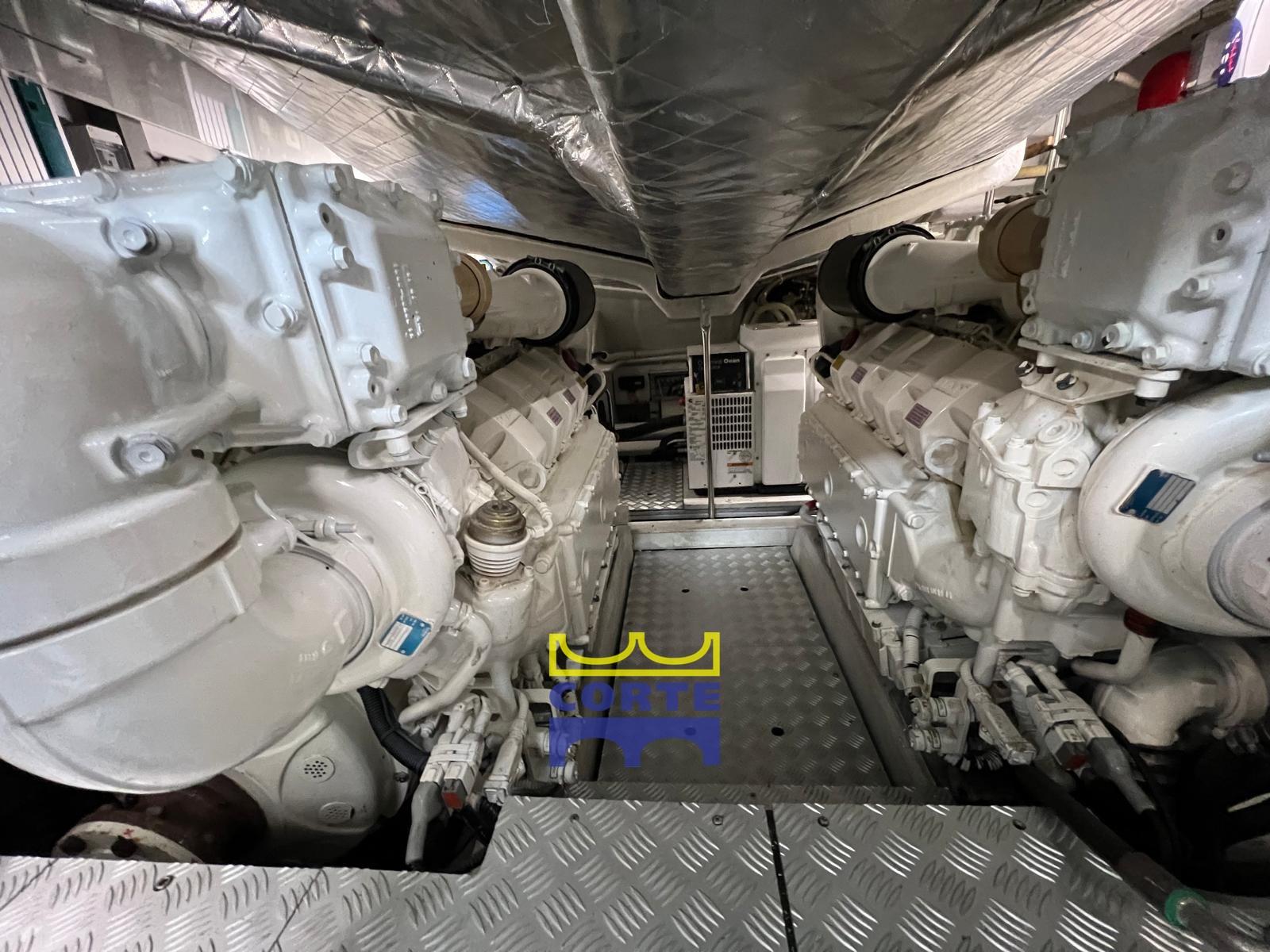 Très bien équipé : stabilisateurs Seakeeper, dessalinisateur, élévateur d’annexe. Capote électro-hydraulique, menottes électroniques, interface domotique Boning.