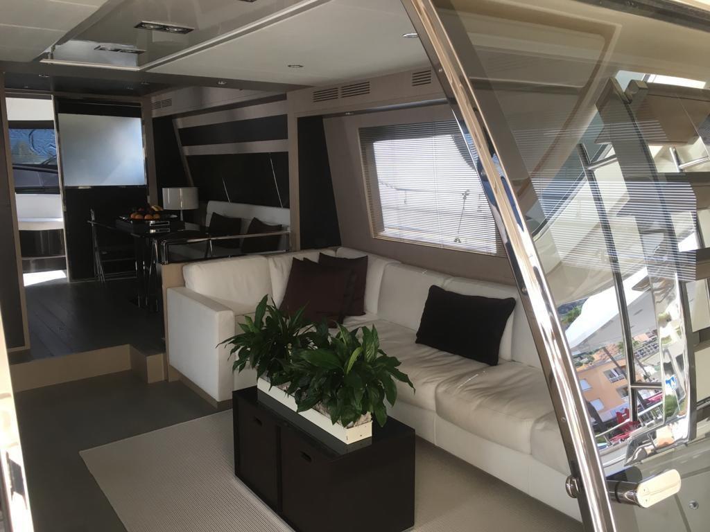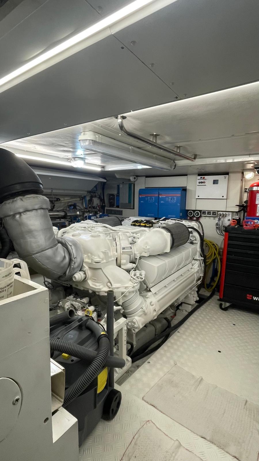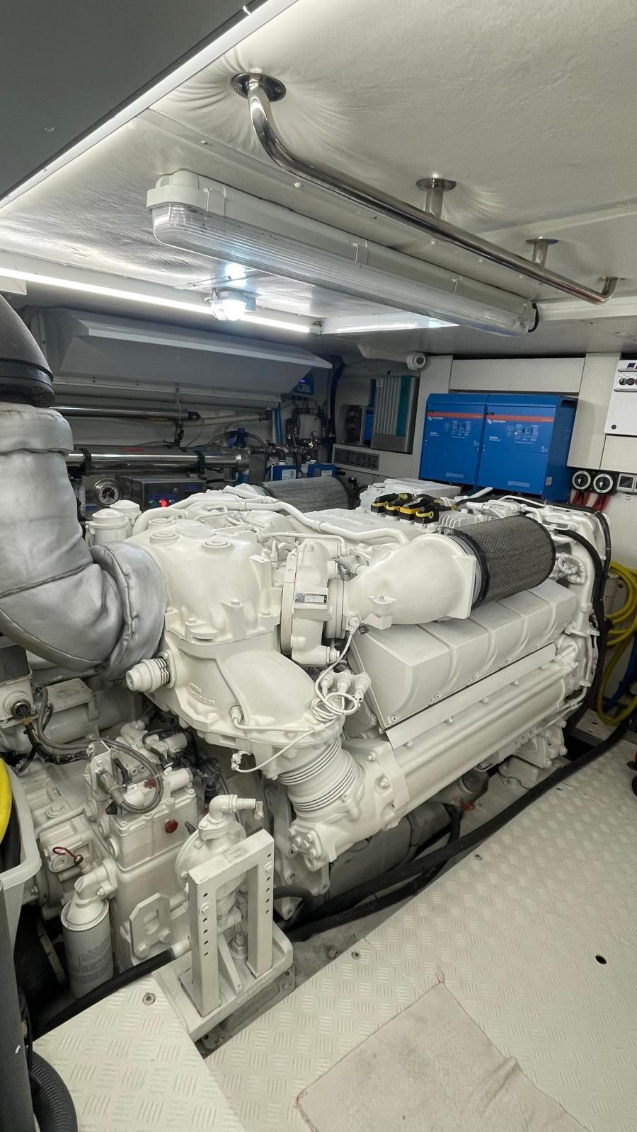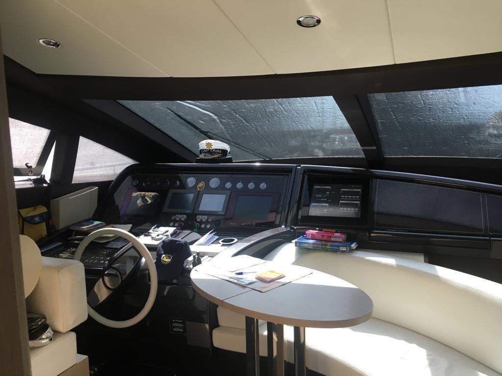 Alarme gaz, Alarme moteur, Alarme de pompe de cale, Eau sous pression, Système de vidange, Passavant en teck, Phare de poursuite, Flaps hydrauliques, Garage à annexe, Grue de flybridge, Hard top, Compresseur de plongée, Indicateurs de flaps, Lavage de chaine, Lavabo dans le cockpit, Éclairage de courtoisie, Spots sous-marins, Passerelle, Plateforme arrière, Pompe de cale automatique, Pompe de cale manuelle, Cockpit en teck, Prise de quai, Connexion eau sous pression à quai, Onduleur, Répétiteur électronique, Guindeau électrique, Echelle de bain, Stabilisateurs, table de cockpit, Corne, T-Top (rigido sul flybridge), Winch électrique arrière, Winch électrique avant.