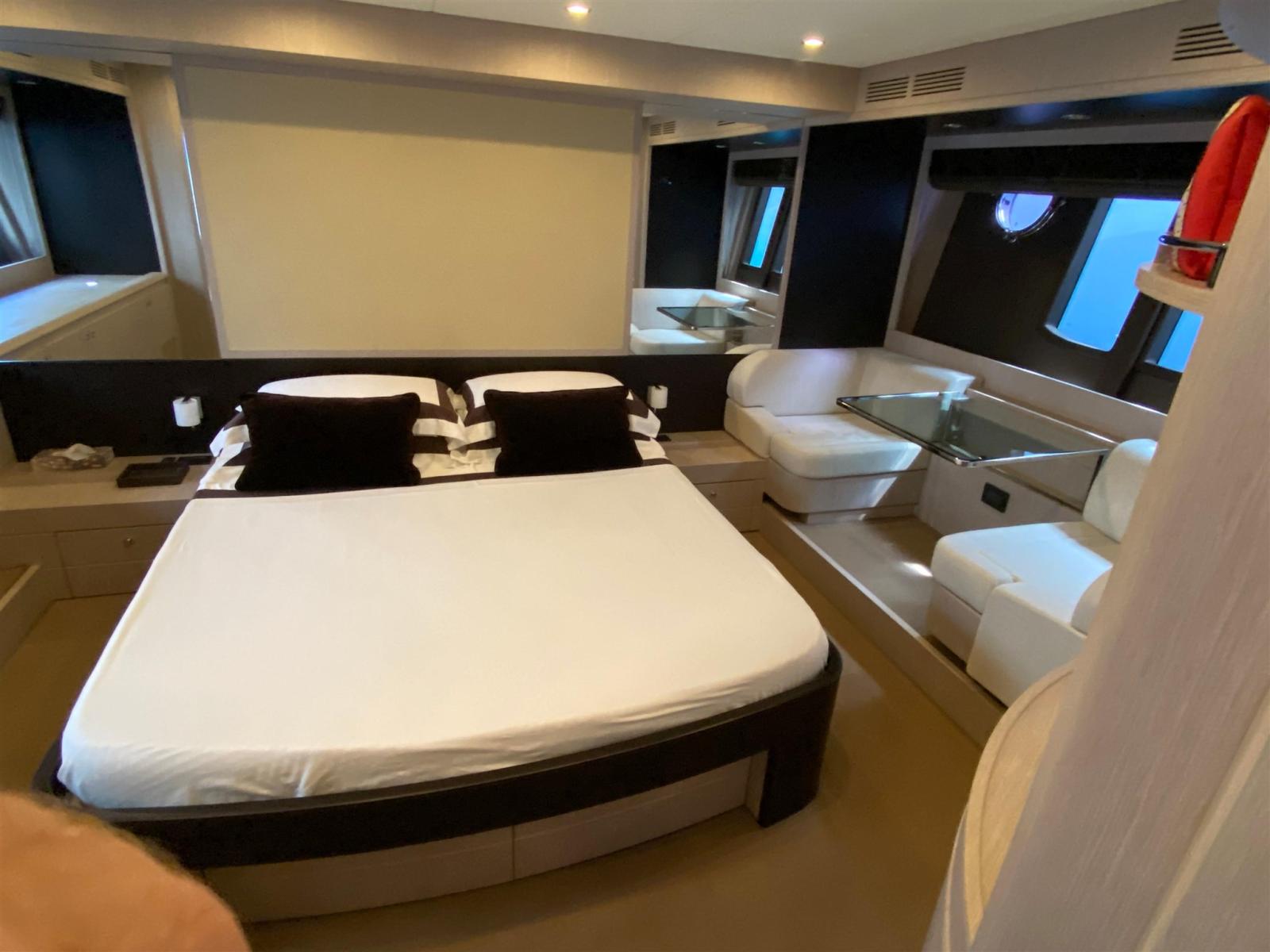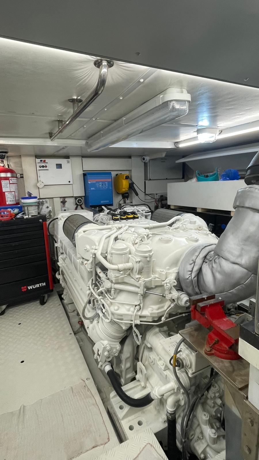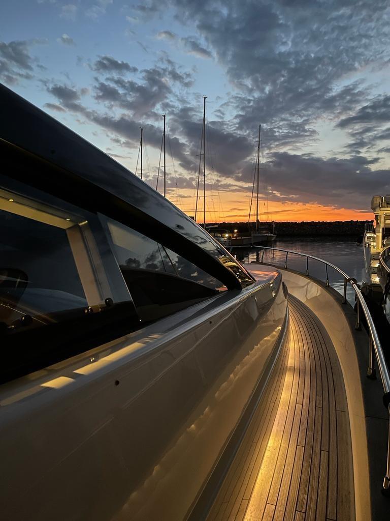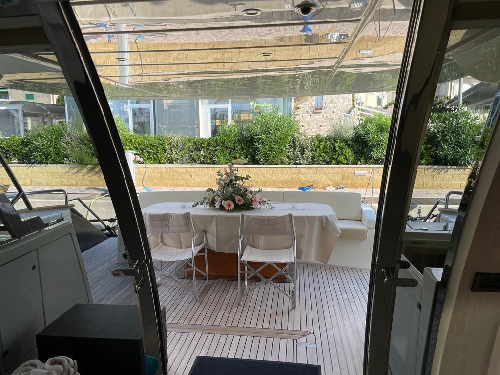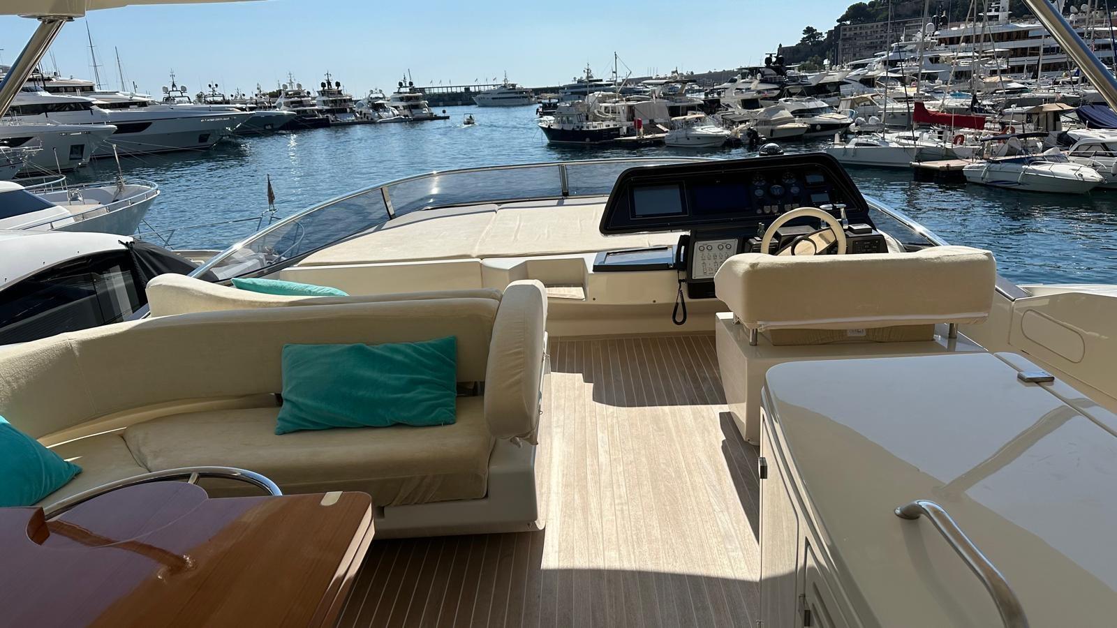 Alarme gaz, Alarme moteur, Alarme de pompe de cale, Eau sous pression, Système de vidange, Passavant en teck, Phare de poursuite, Flaps hydrauliques, Garage à annexe, Grue de flybridge, Hard top, Compresseur de plongée, Indicateurs de flaps, Lavage de chaine, Lavabo dans le cockpit, Éclairage de courtoisie, Spots sous-marins, Passerelle, Plateforme arrière, Pompe de cale automatique, Pompe de cale manuelle, Cockpit en teck, Prise de quai, Connexion eau sous pression à quai, Onduleur, Répétiteur électronique, Guindeau électrique, Echelle de bain, Stabilisateurs, table de cockpit, Corne, T-Top (rigido sul flybridge), Winch électrique arrière, Winch électrique avant.