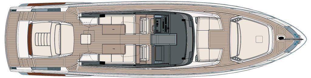 Parmi les équipements : lumières sous-marines, grille de cockpit, bimini manuel et automatique, chaises longues et échelle de bain hydraulique.