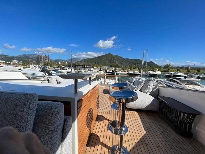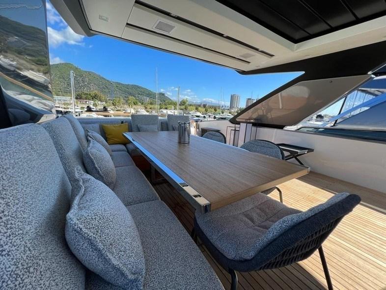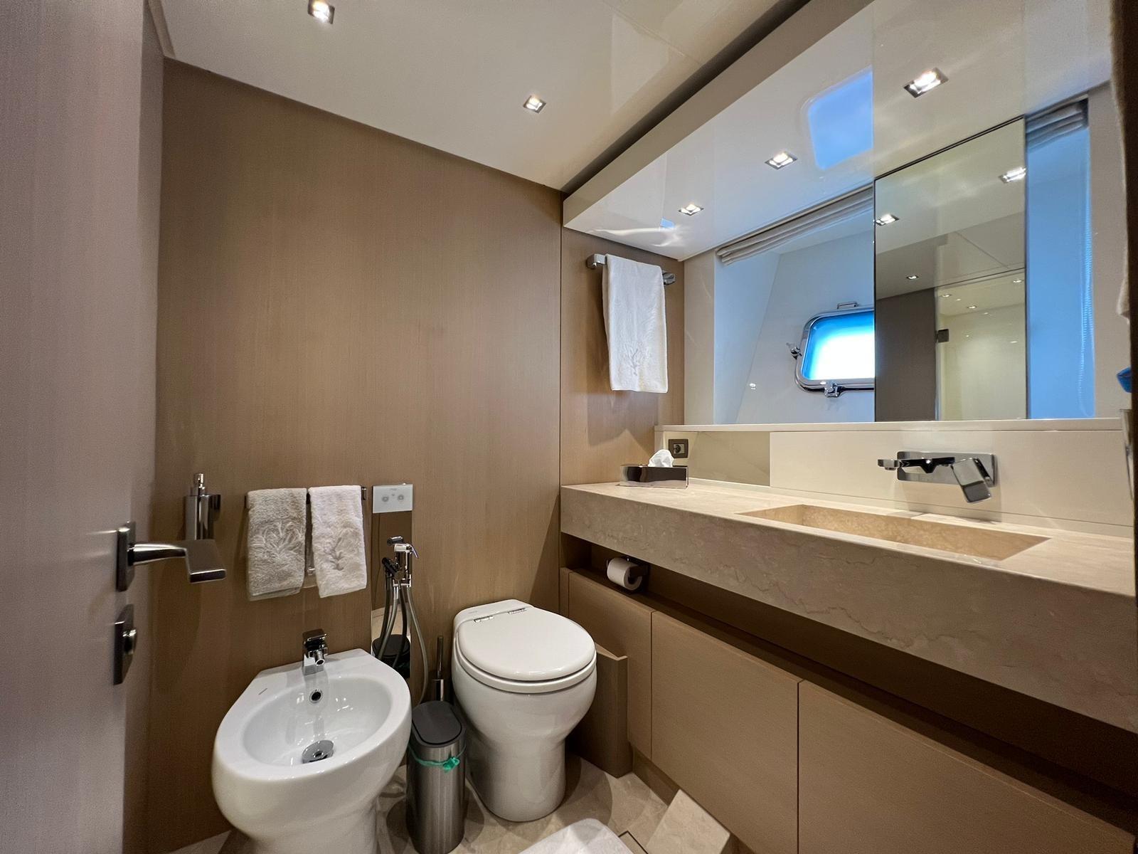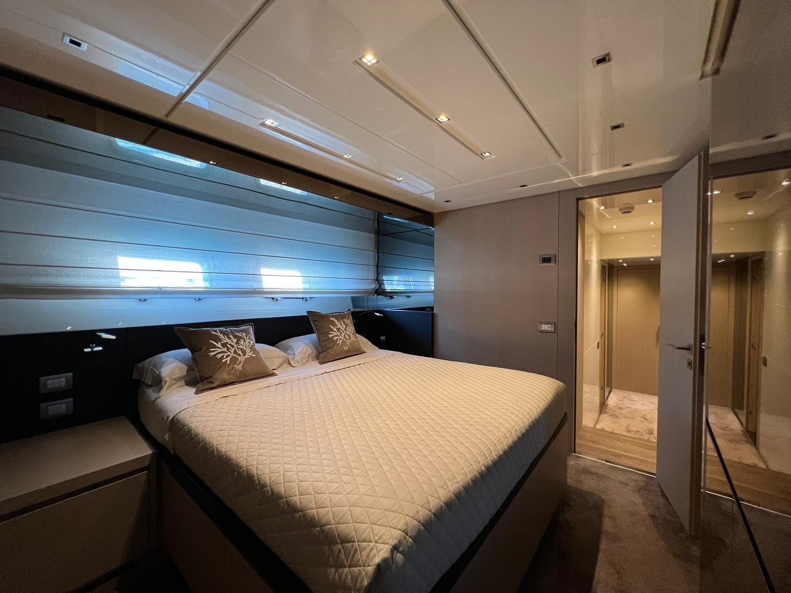 Eau Chaude, BBQ/ Grill (Fly), 2 Ballon d'eau chaude, Air Conditionné, Connexion à internet, Contrôleur domotique, Dessalinisateur (300 LT Ora Idromar), Cuve à eaux noires, Jauge de Réservoir d’Eau, Jauge de Réservoir d’Eaux Usées, Plancher intérieur en bois (Zona Dinette), Réservoir d'eau noire (400LT), Caméra vidéo (Garage, plancia, Salone, Poppa, Laterali,Fly), Interphone, Caméra infrarouge, Toilettes électriques.
