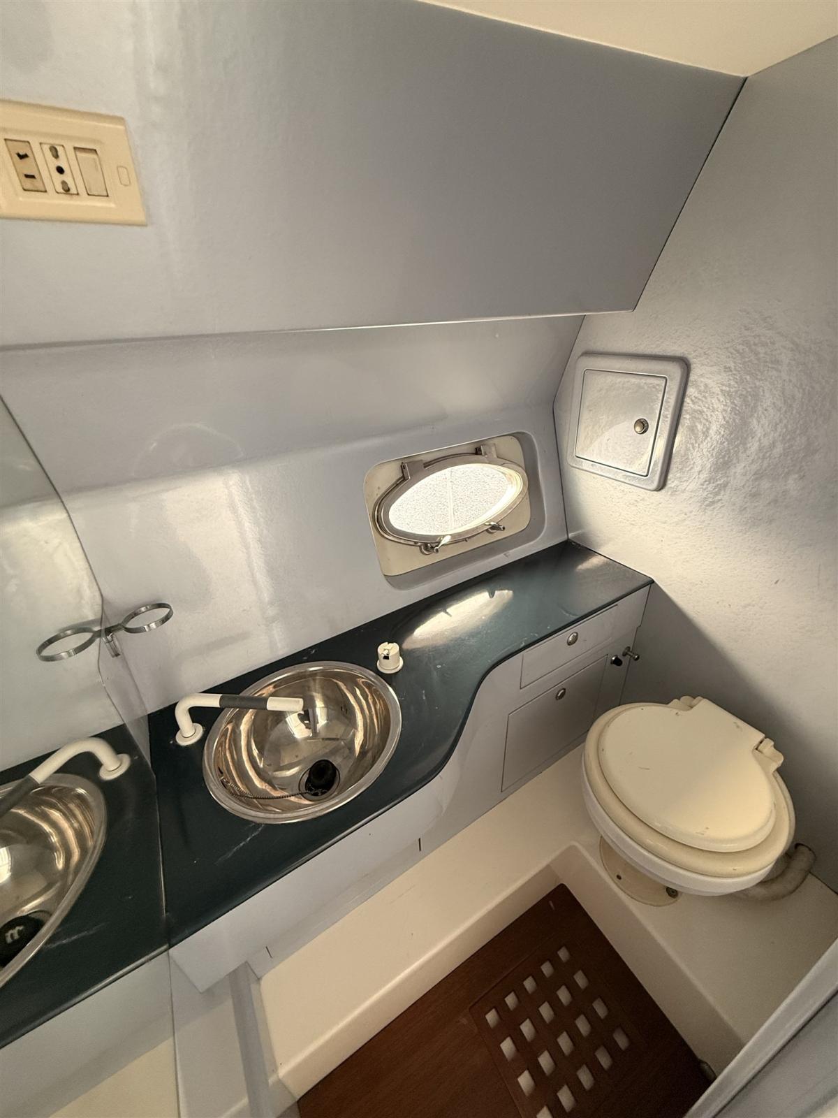 Dans la cabine, il y a une salle à manger confortable avec canapé et table rabattable avec coussin qui permet d’avoir un lit supplémentaire, un lit double à la proue et une couchette située au milieu du navire.