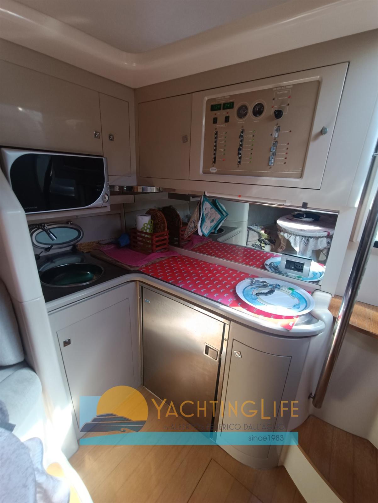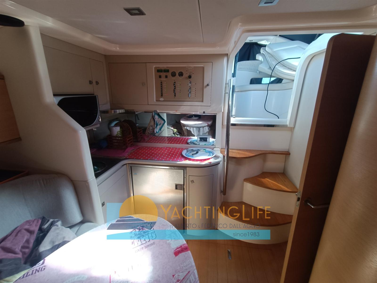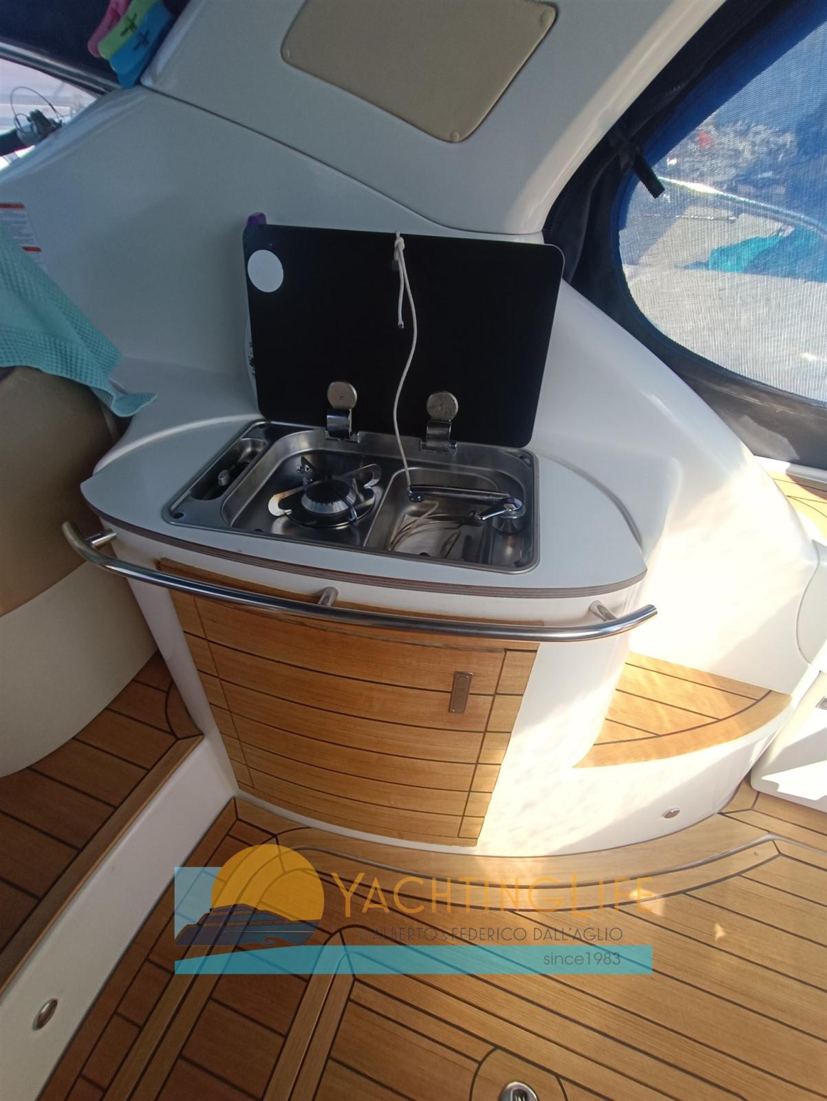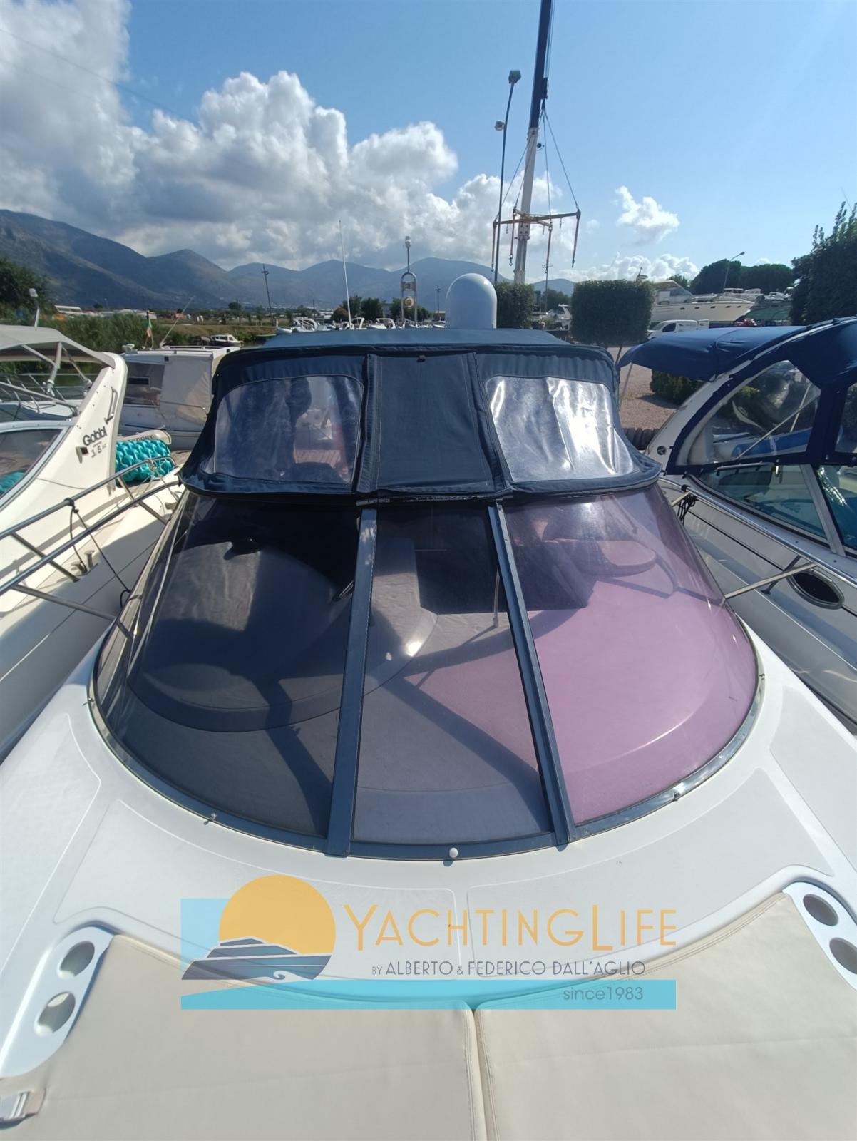 Alarme moteur, Ouverture du compartiment moteur électrique, Eau sous pression, Chargeur de batterie (Quick), Douche de cockpit, Flaps hydrauliques (Bennet), Lavabo dans le cockpit, Éclairage de courtoisie, Moteur d'annexe (Honda), Plateforme arrière (In teak), Pompe de cale automatique, Porte latérale, Cockpit en teck, Prise de quai, Rollbar, Guindeau électrique, Echelle de bain, Selles pour Annexe, table de cockpit, Annexe (VTR), Corne.