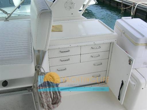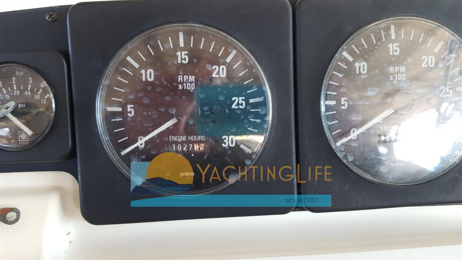 Alarme moteur, Eau sous pression (N. 1), Couleur spéciale (Blu), Douche de cockpit, Flaps hydrauliques (N. 2), Extincteur(s) fixe(s), Éclairage de courtoisie, Passerelle (Manuale), Plateforme arrière, Pompe de cale automatique, Porte latérale, Prise de quai, Rollbar, Guindeau électrique, Echelle de bain, Corne.