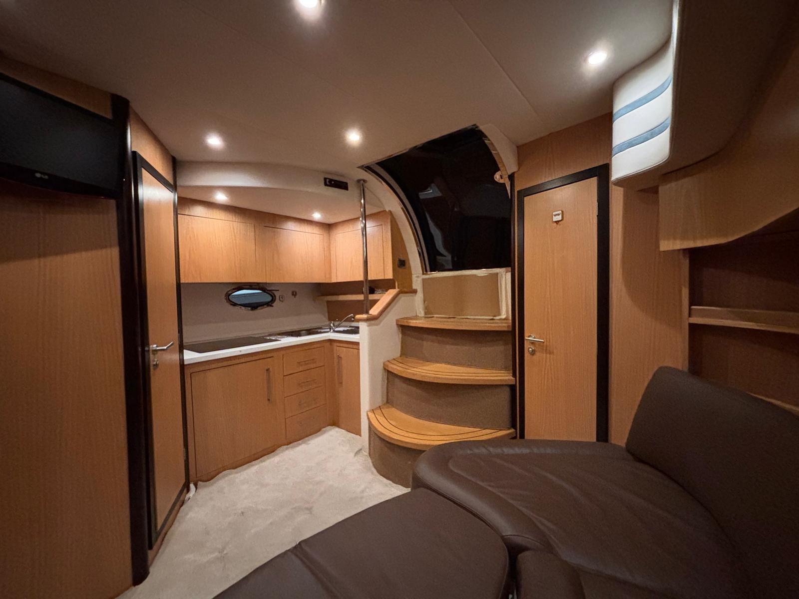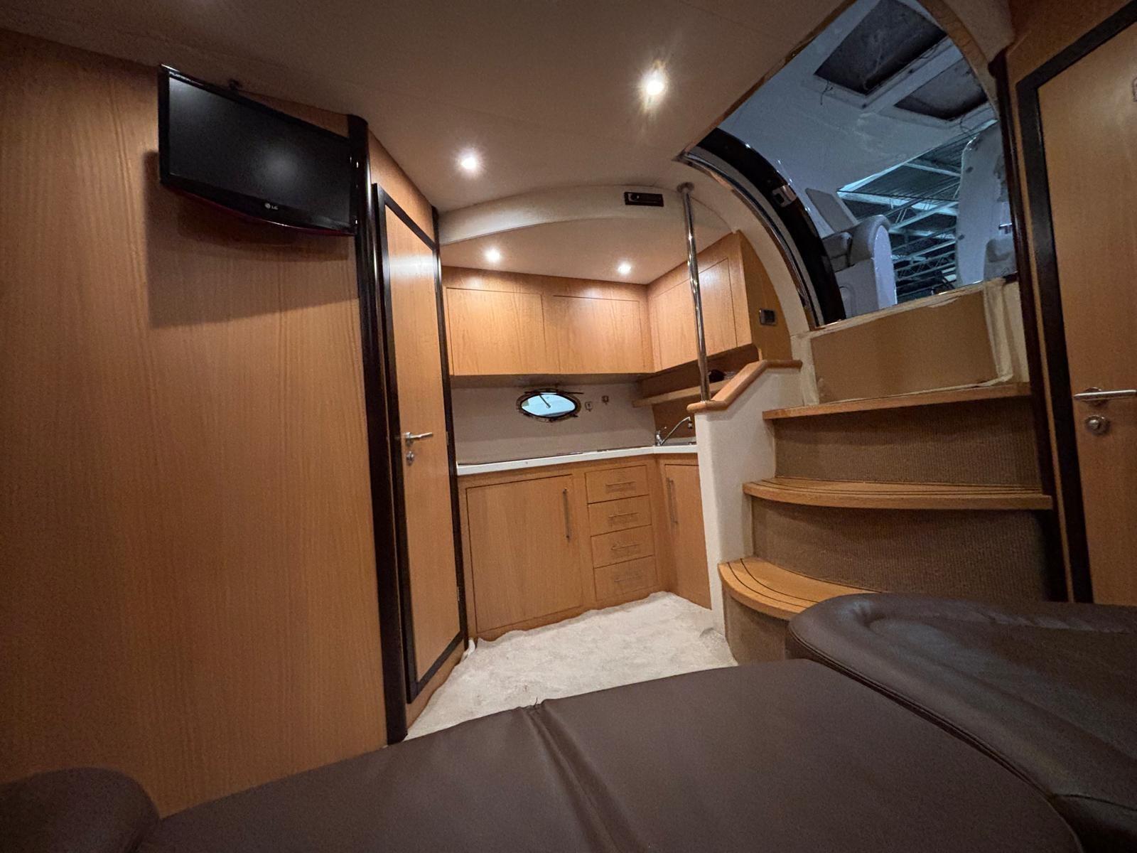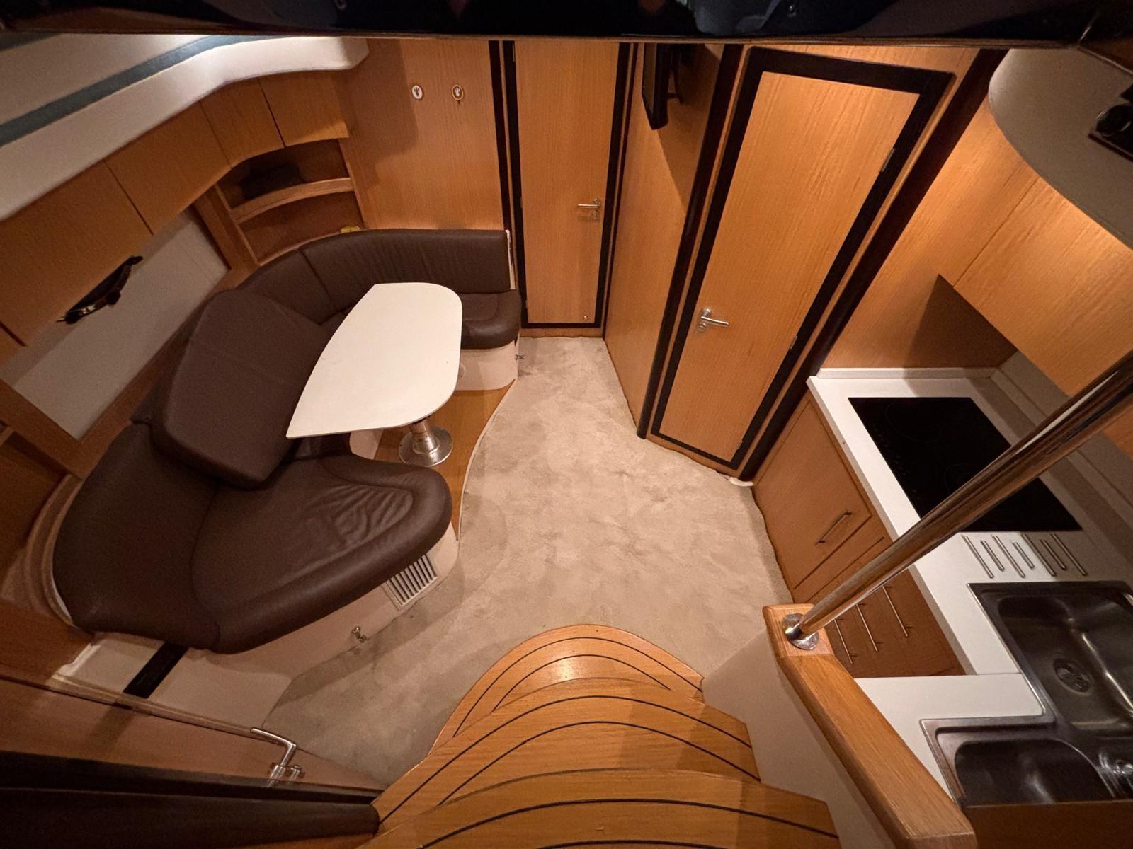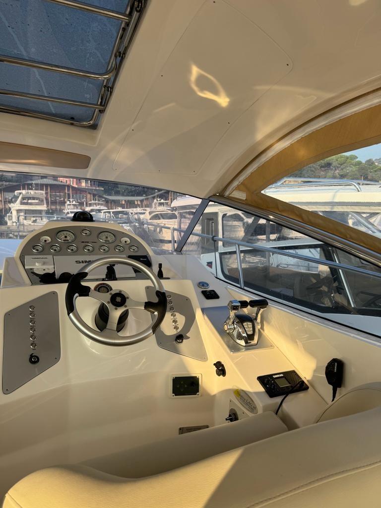 Accessoires : Compas, compteur de chaînes, écran, sondeur, pilote automatique, traceur, radio VHF, ancre et chaîne, batteries, chargeur de batterie, propulseur d’étrave, volets électriques, passerelle, pompe de cale électrique, prise 220v, guindeau électrique, échelle de bain, climatisation, chaîne stéréo et haut-parleurs, cuisine interne, cuisinière, réfrigérateur interne
